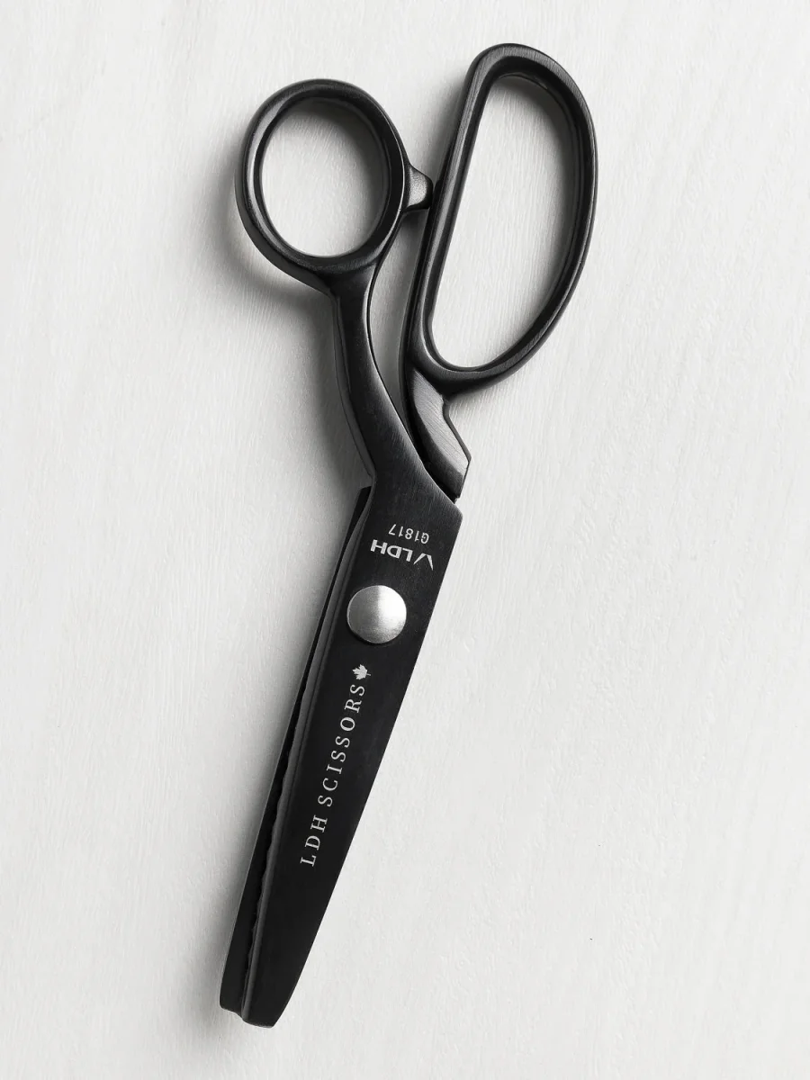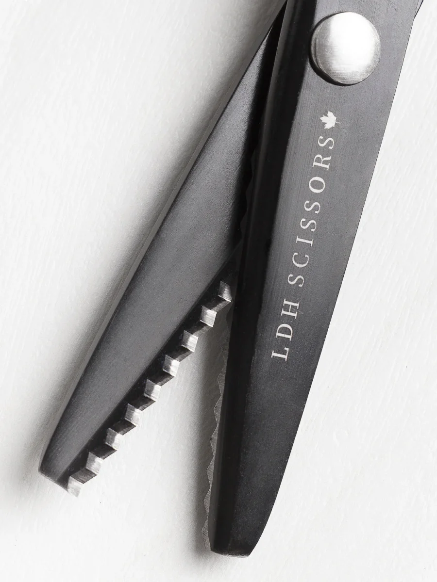 Widely considered to be one of the best pinking shears on the market! These right-handed midnight black pinking shears are smooth and powerful enough to cut through any kind of light to midweight fabric. Crafted from industrial stainless steel and coated with LDH’s signature coating, these durable shears also have perfectly aligned, hand-sharpened teeth to ensure precise cuts every time and prevent the fabric from unraveling! Put the joy back into pinking with these black beauties!