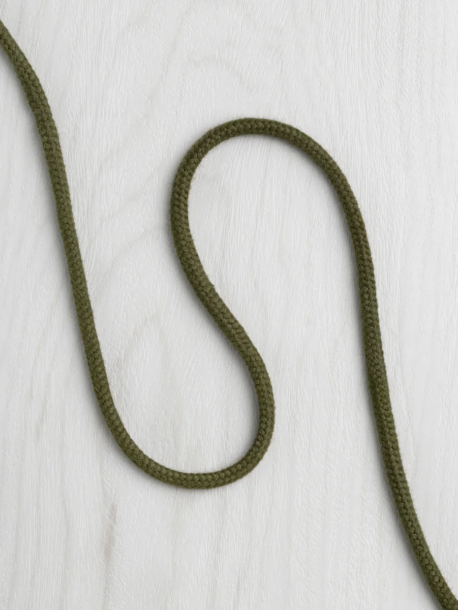 This 8mm round cord is tightly braided with an empty centre, giving it a soft, flexible feel while maintaining structure, ideal for sweatpants, hoodies, jackets, and other drawstring features. Crafted from 100% cotton, it pairs beautifully with our organic cotton fleece and matching rib, creating a seamless, colour-coordinated finish. Durable yet soft to the touch, it slides easily through channels and stays comfortably in place.