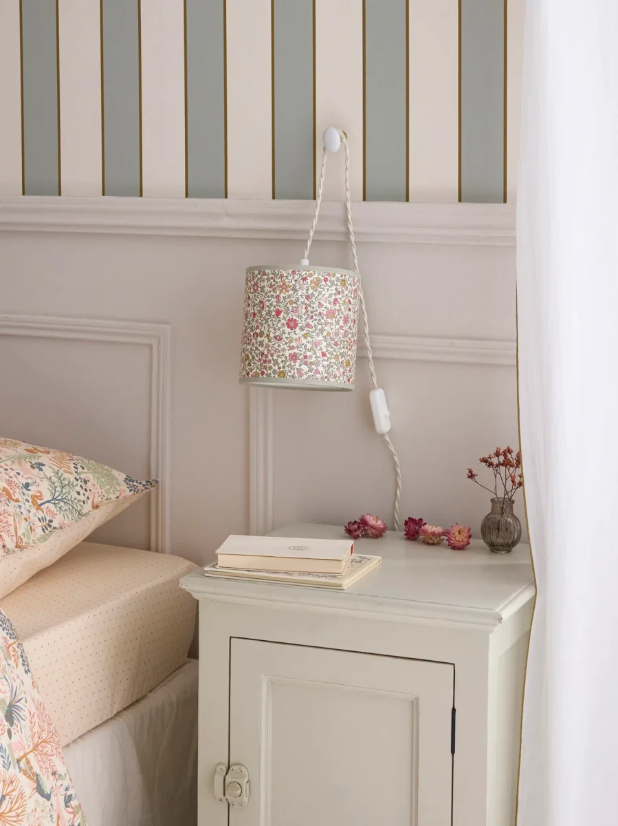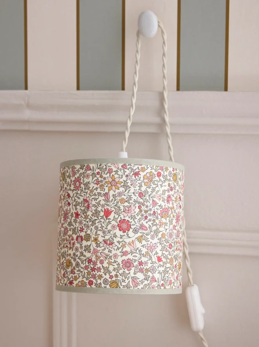 Abat-jour pour lampe baladeuse en tissu Liberty Godington Park. Baladeuse non électrifiée, fabriquée en France.