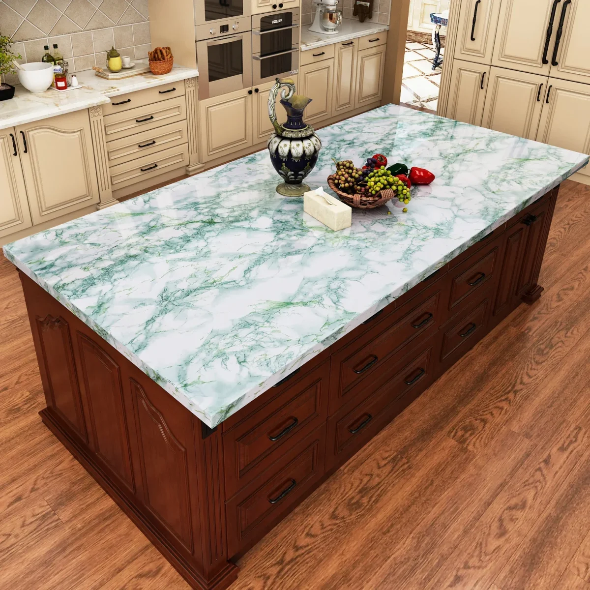 Adhésif Plan de Travail Vert avec Motif Marbré