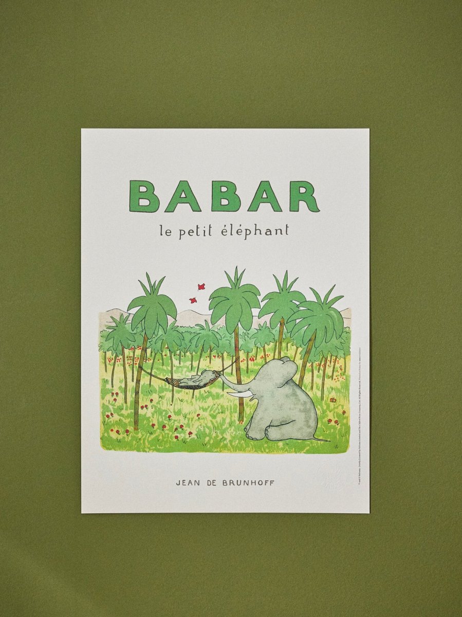 Affiche officielle Babar™ fabriquée en France en édition d’art imprimée sur papier texturé, coloris crème.