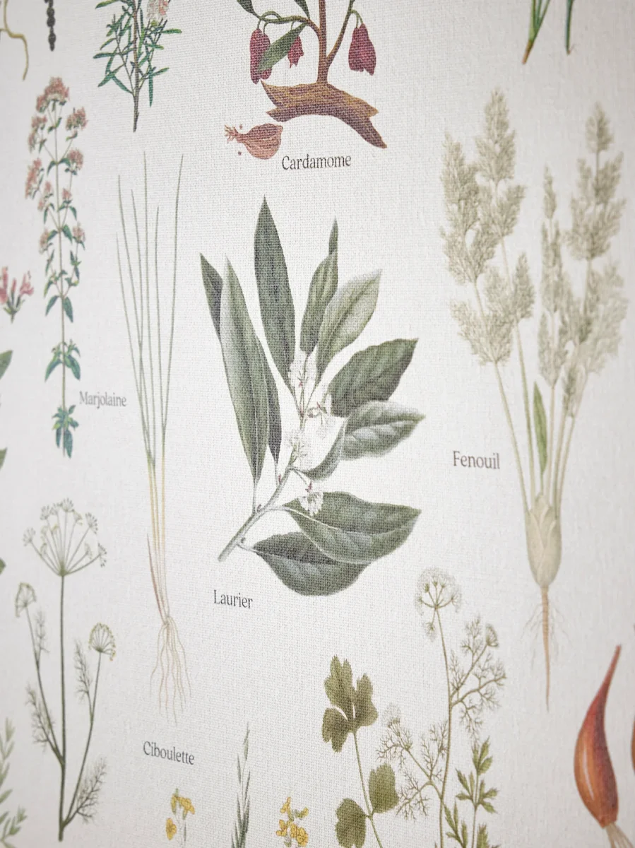 La planche Plantes Botaniques est idéale pour apprendre à reconnaitre les différentes plantes aromatiques. Les illustrations sont issues d’un ouvrage de botanique datant du début du XXème siècle. Elle est imprimée en France sur une toile canvas waterproof et résistante.