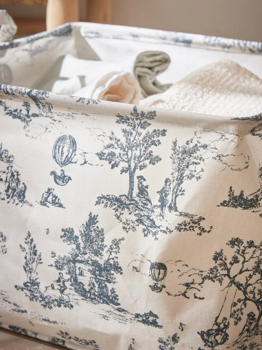 Bac à linge semi-rigide d’inspiration Jouy. Charme et authenticité s’invite dans la buanderie. Dim. L. 50 x l. 40 x H. 28 cm.