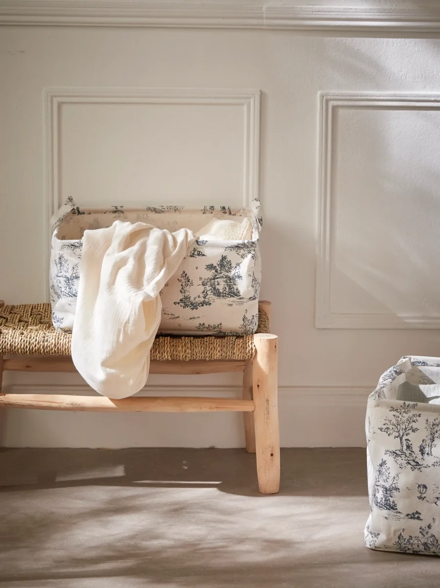 Bac à linge esprit Jouy, petit modèle