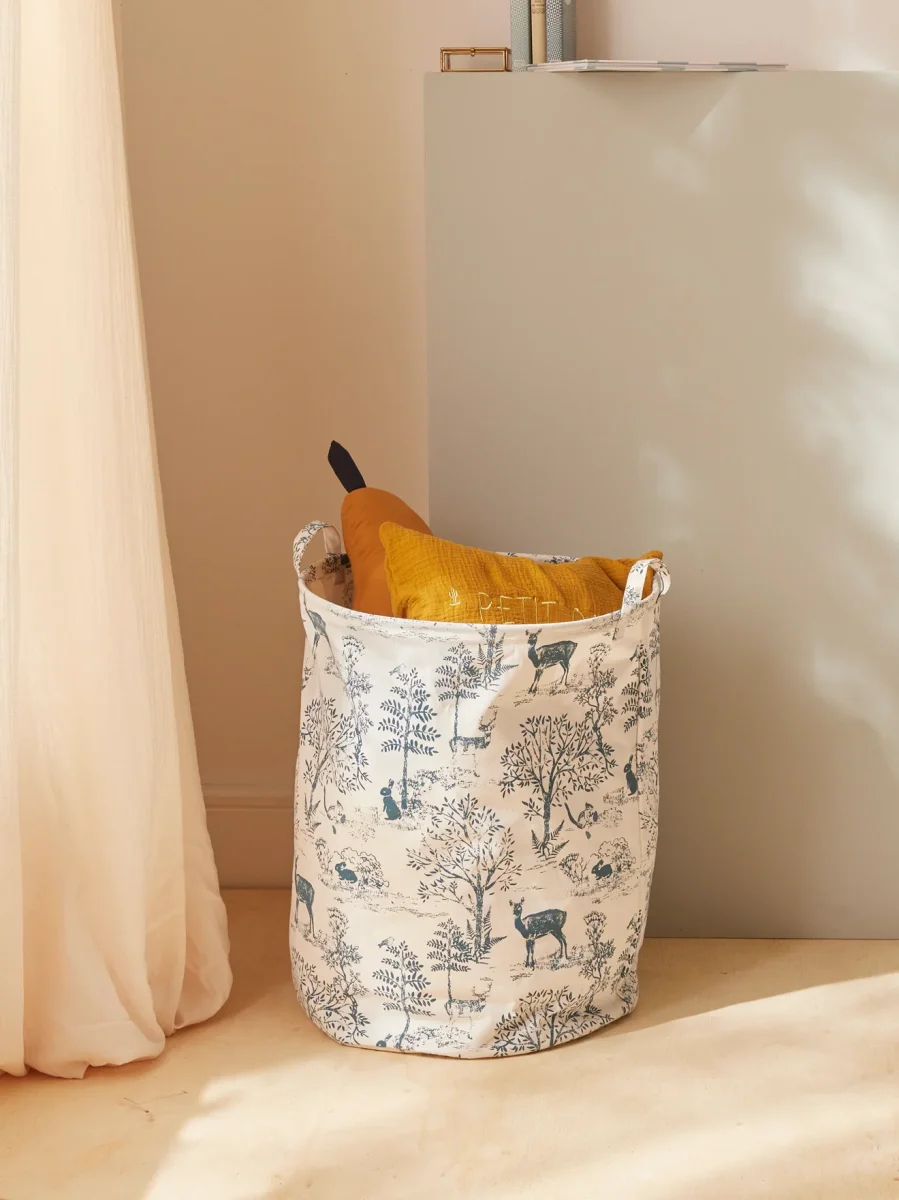 Ce haut et grand bac semi-rigide s’inspire d’un célèbre imprimé au charme d’antan. Panier à fond rigide confectionné en toile robuste enduite à l’intérieur. Idéal pour ranger des jouets, du linge…