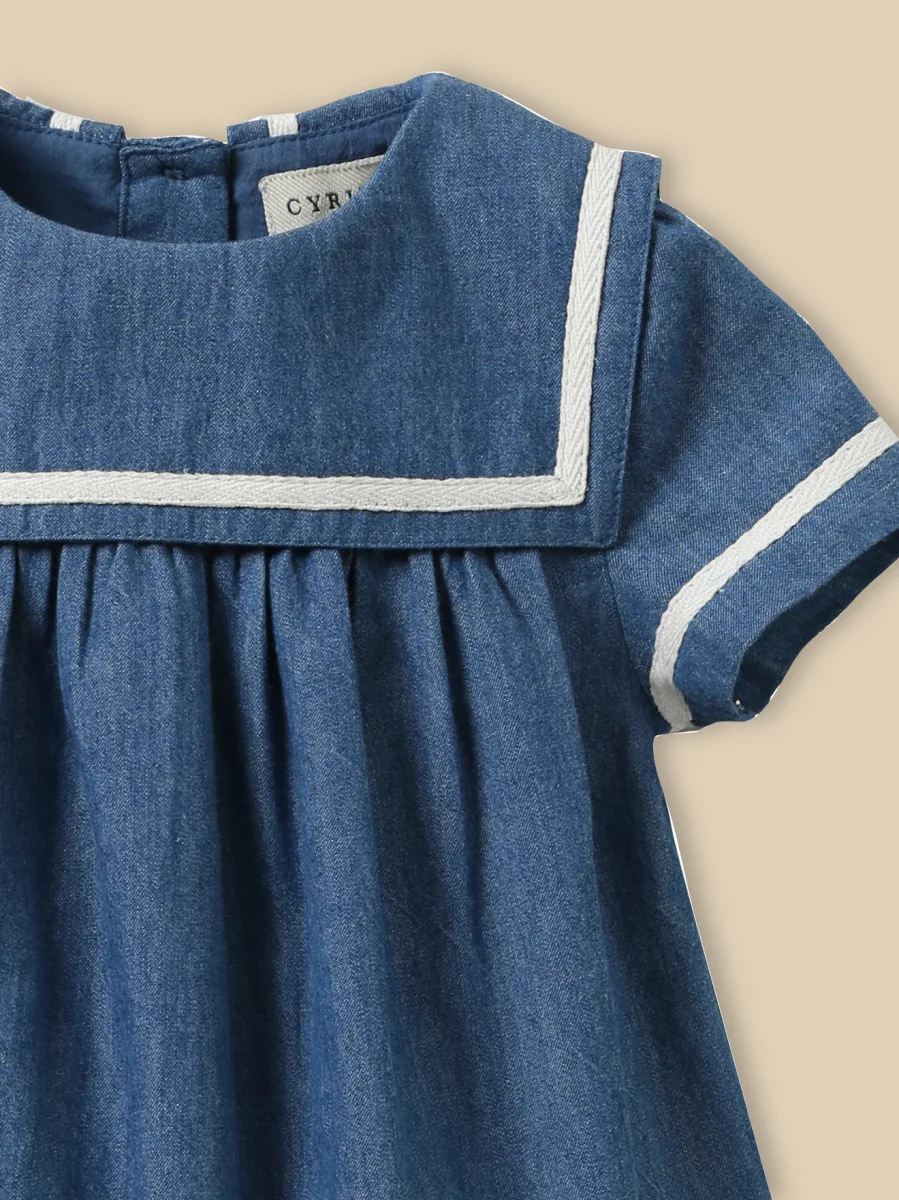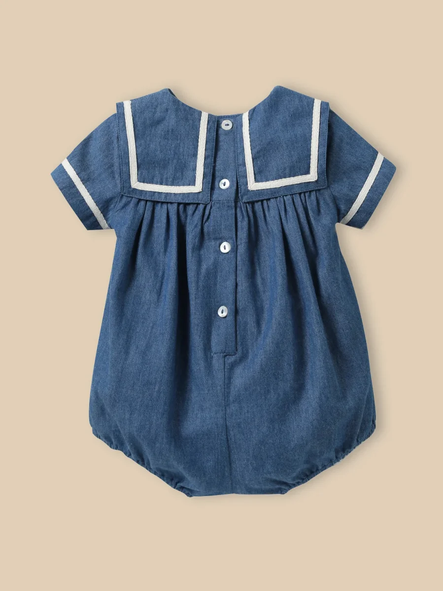 En denim light et dotée d’un élégant col marin, cette barboteuse est LA pièce estivale idéale. Un cadeau charmant pour accompagner bébé tout l’été.