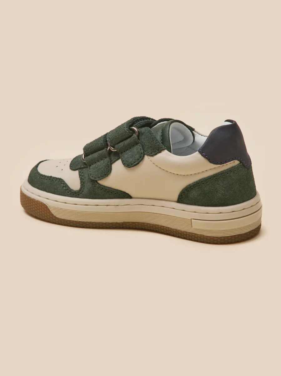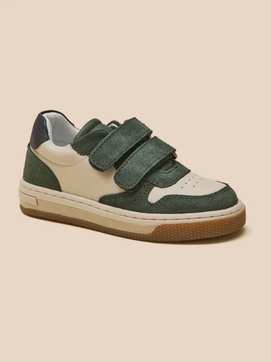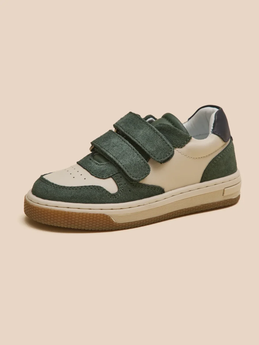 Cette basket bicolore en cuir offre un style moderne et sportif. Facile à enfiler, elle est équipée de bandes auto-agrippantes ajustables pour une ouverture facile et rapide.