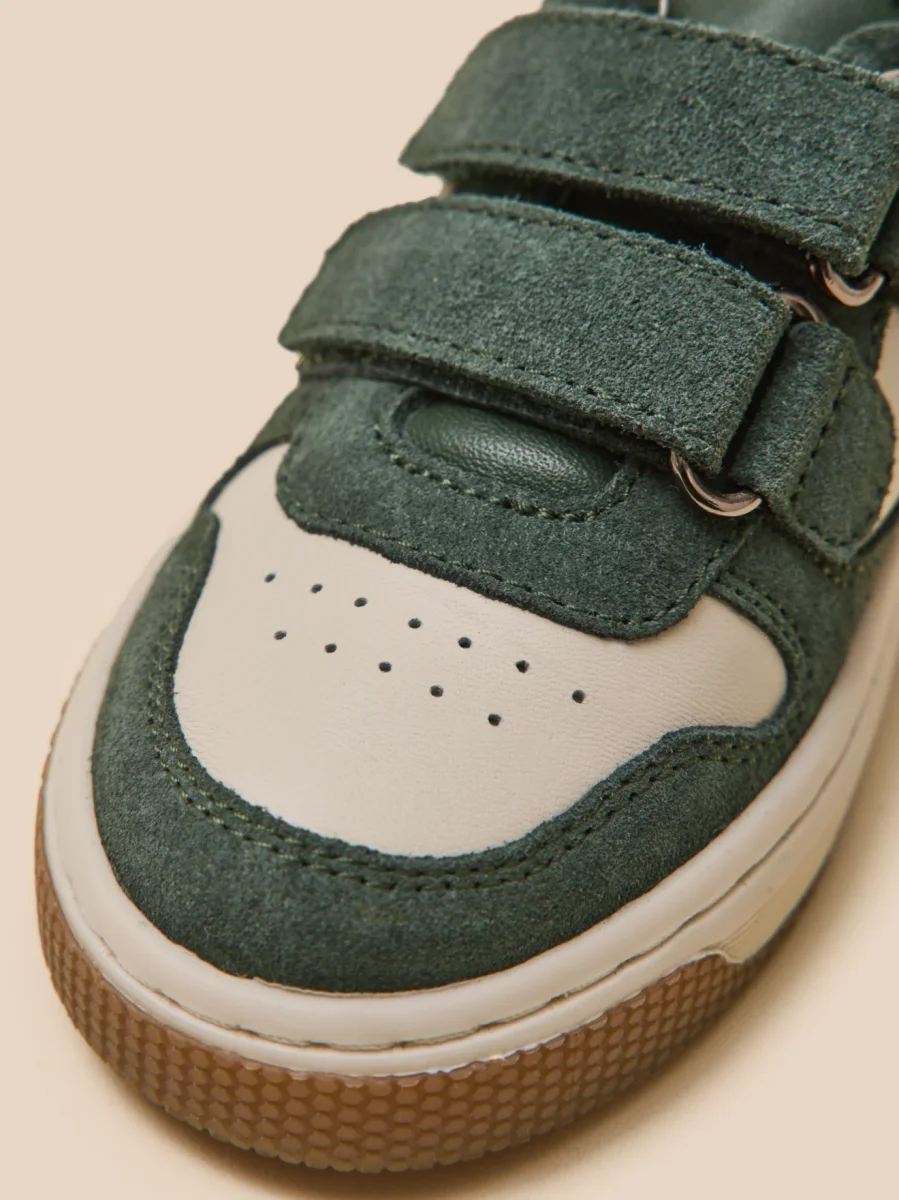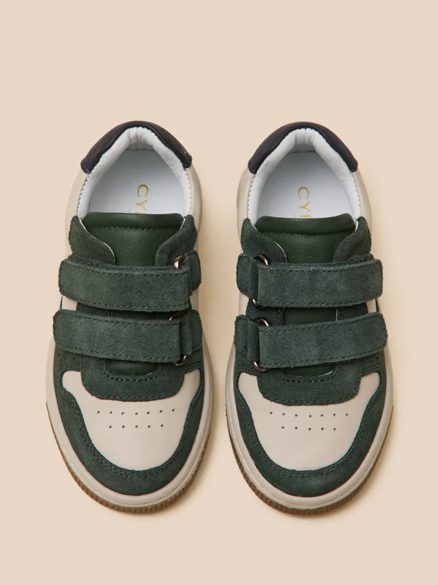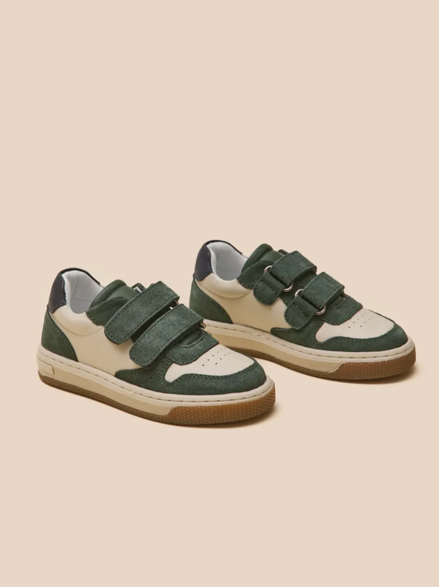 Cette basket bicolore en cuir offre un style moderne et sportif. Facile à enfiler, elle est équipée de bandes auto-agrippantes ajustables pour une ouverture facile et rapide.