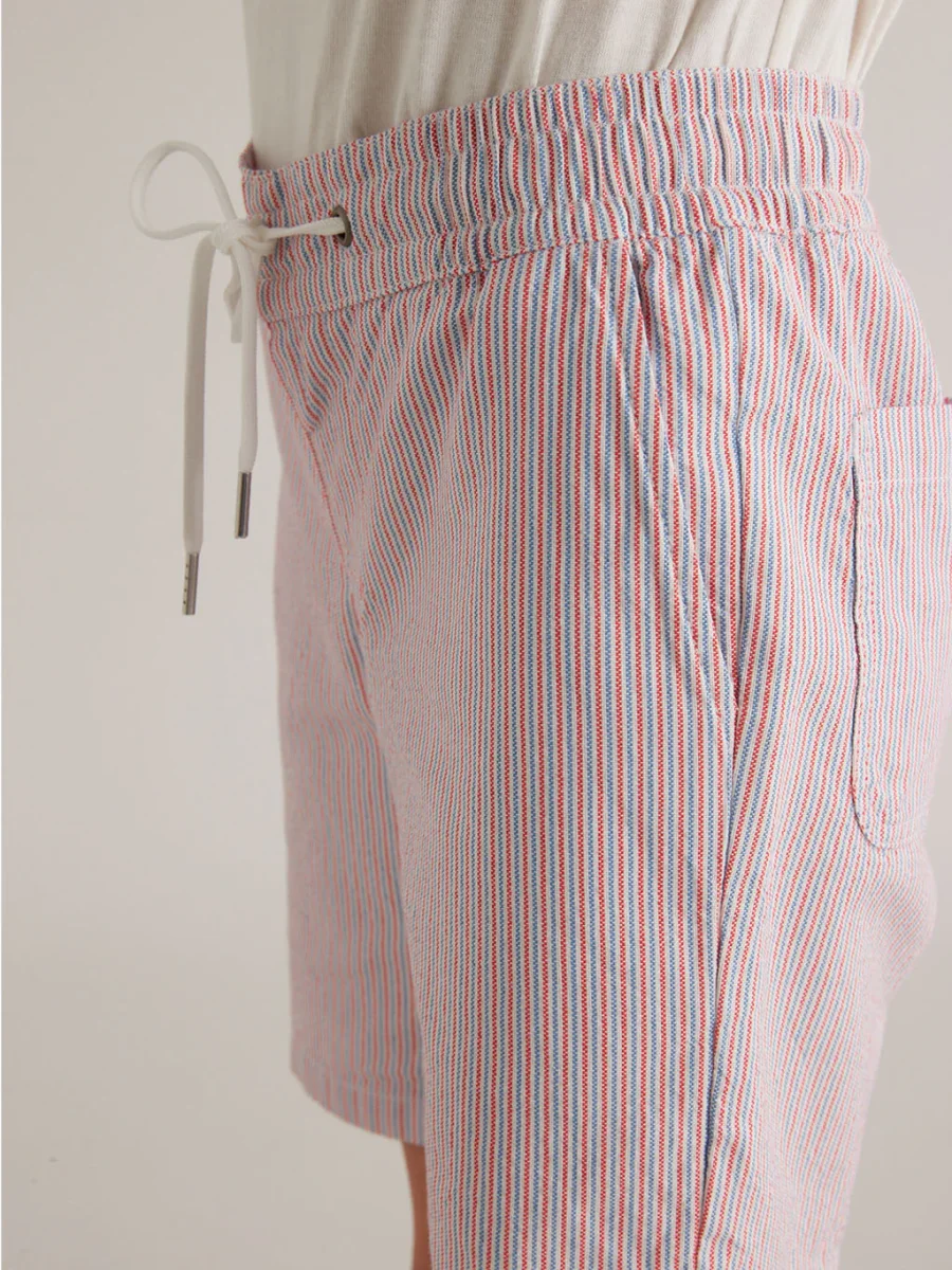 Une fine rayure fantaisie et colorée pour un bermuda très graphique et facile à associer.
