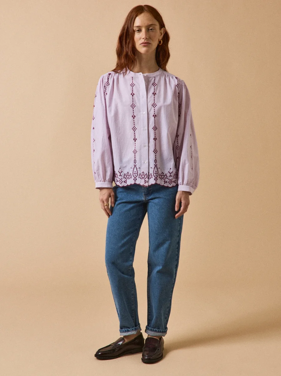 Blouse brodée contrastée coton femme