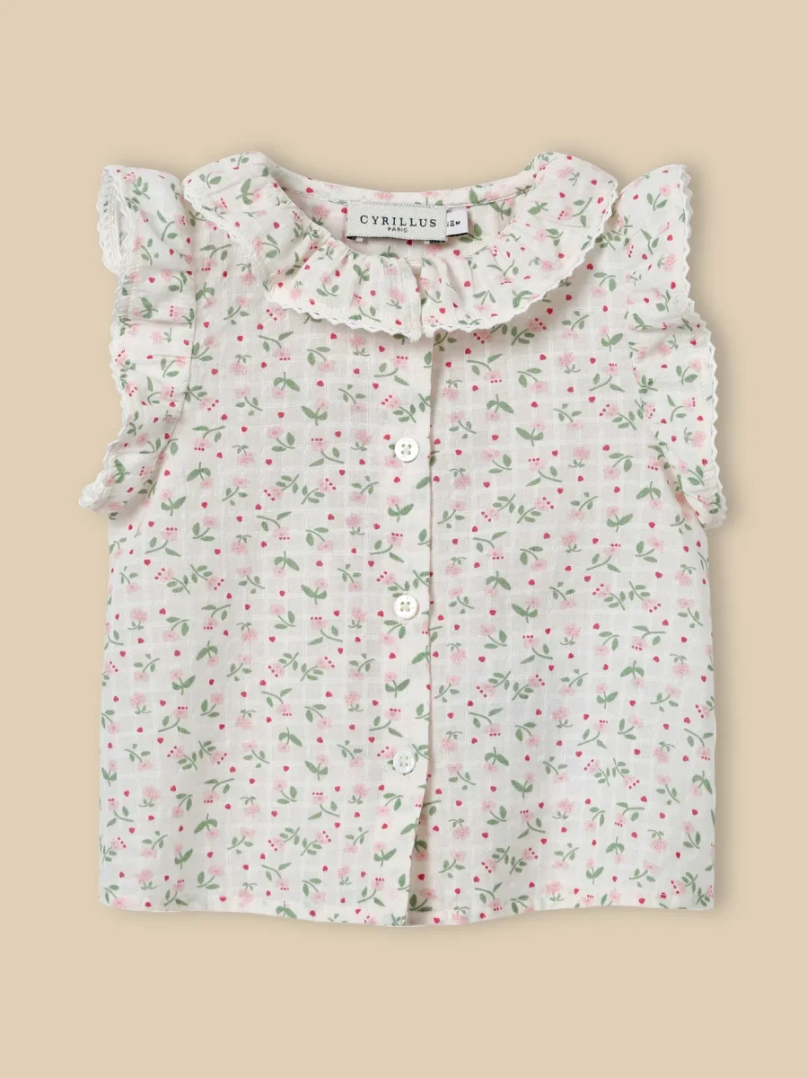 Légère et aérienne, une blouse en gaze de coton aux jolis volants d’été.