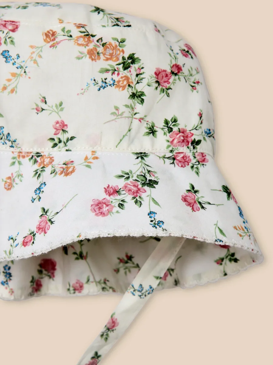 Bob en tissu Liberty Elisabeth, parfait pour ajouter une touche florale et élégante aux looks d’été. Liens d’attache Finition picot
