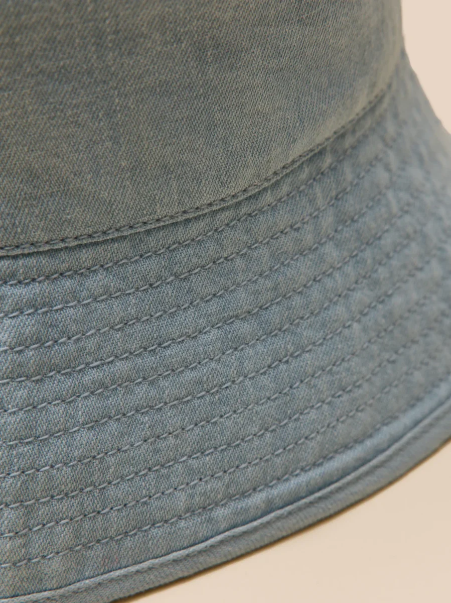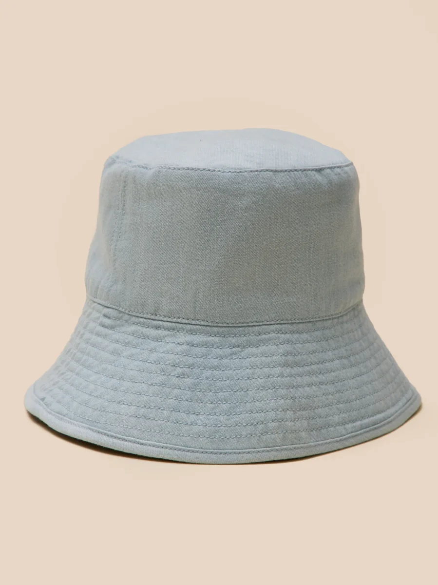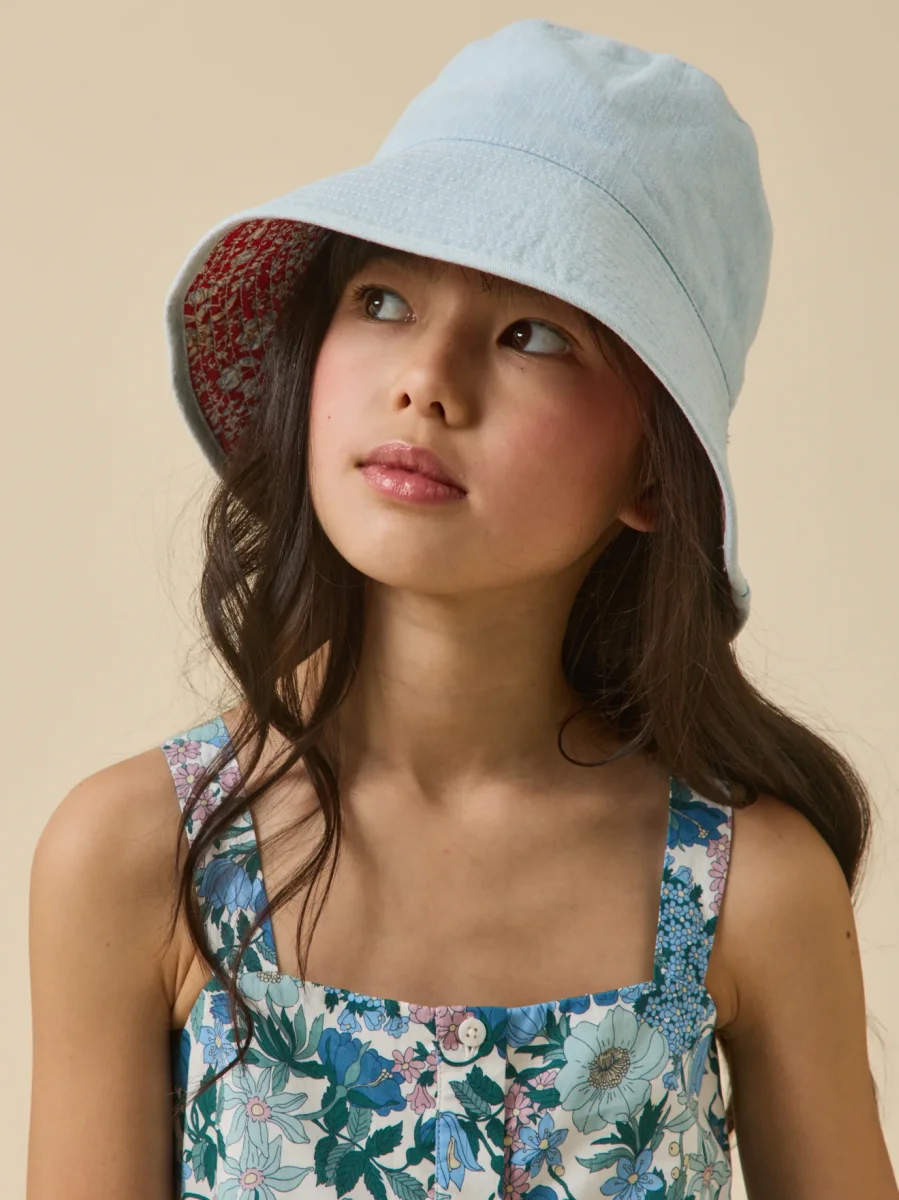 Un bob réversible : une face en tissu Liberty Lizzy, délicat et fleuri, l’autre en denim pour un look plus casual. Deux ambiances en un seul accessoire !