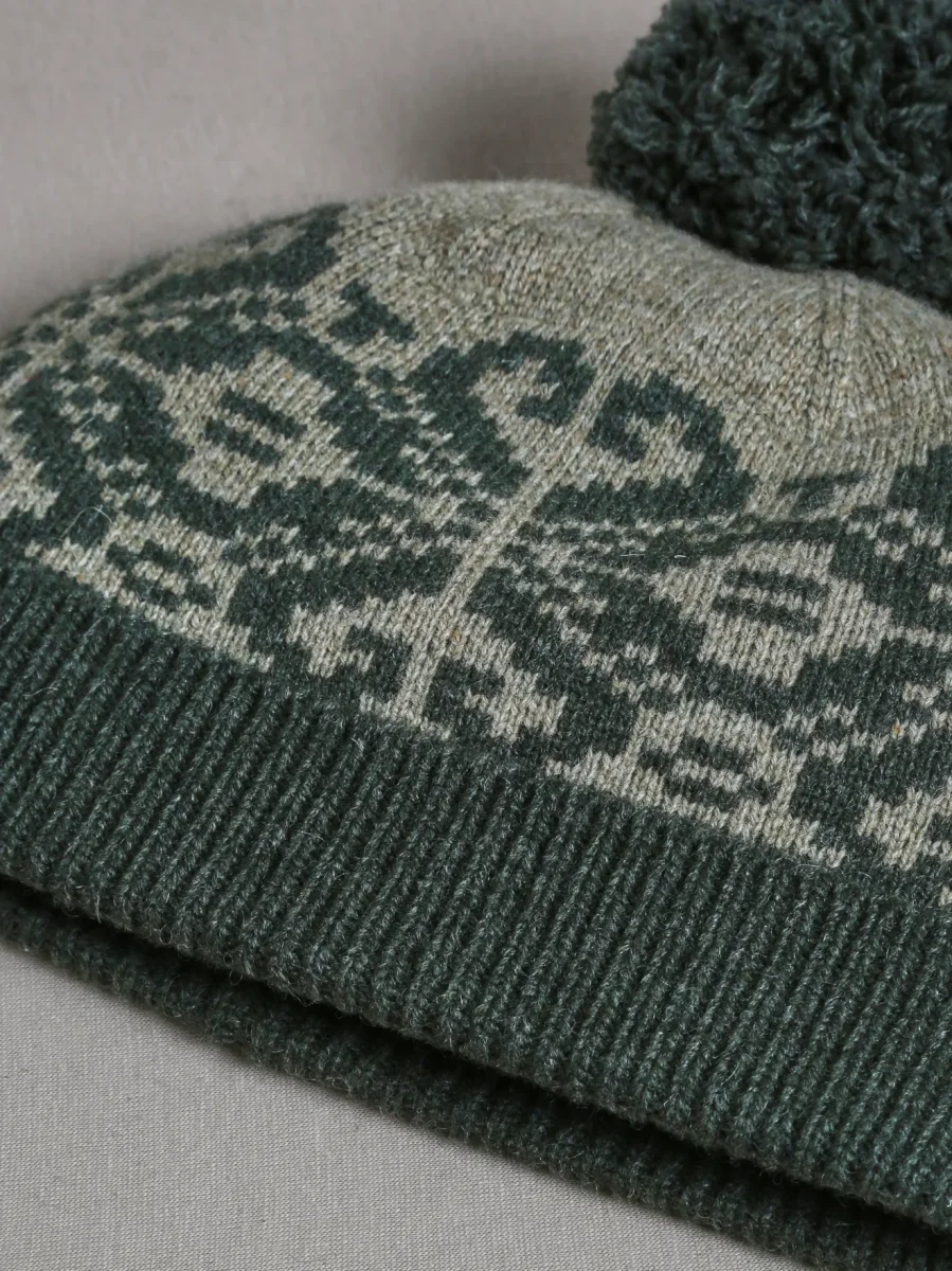 Pas d’hiver sans jacquard ! Un bonnet en laine majoritaire doux et chaud.