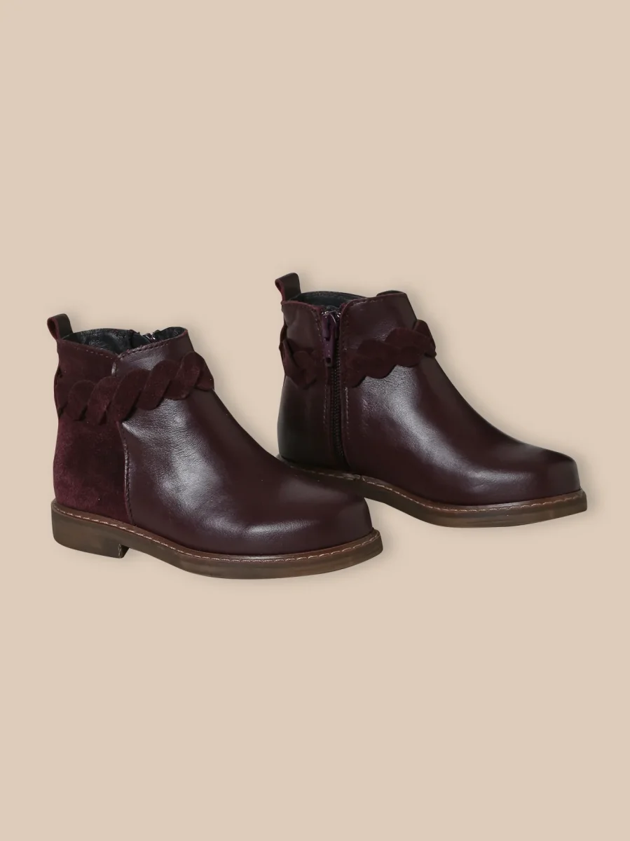 Boots en cuir lisse, délicatement soulignée d’une tresse en cuir velours.
