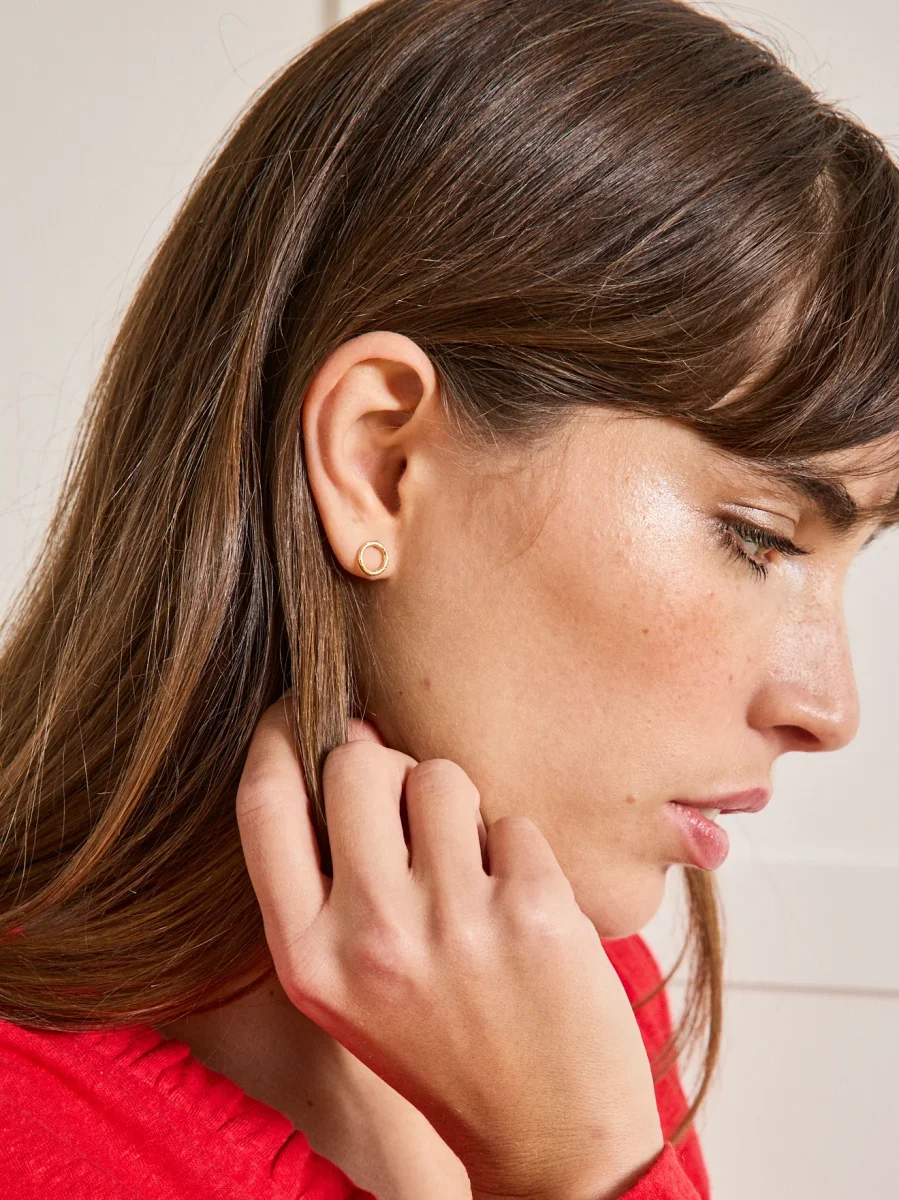 Les modèles Joy Collection Chic Alors sont des mini boucles d’oreilles rondes composées d’un anneau finement martelé. Elles sont conçues pour les oreilles percées.