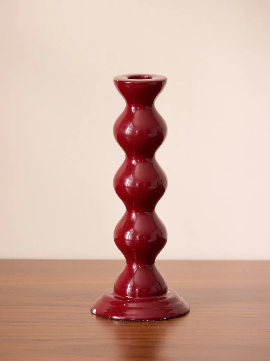 Objet de déco élégant au design intemporel et au coloris actuel et chaleureux. Bougeoir boules en métal émaillé fabriqué en Inde de façon artisanale. L’émaillage est un procédé de fabrication qui consiste à recouvrir le métal d’une couche vitreuse lui apportant brillance et résistance. Hauteur 20 cm Pour bougie chandelle (diamètre 2 cm environ)