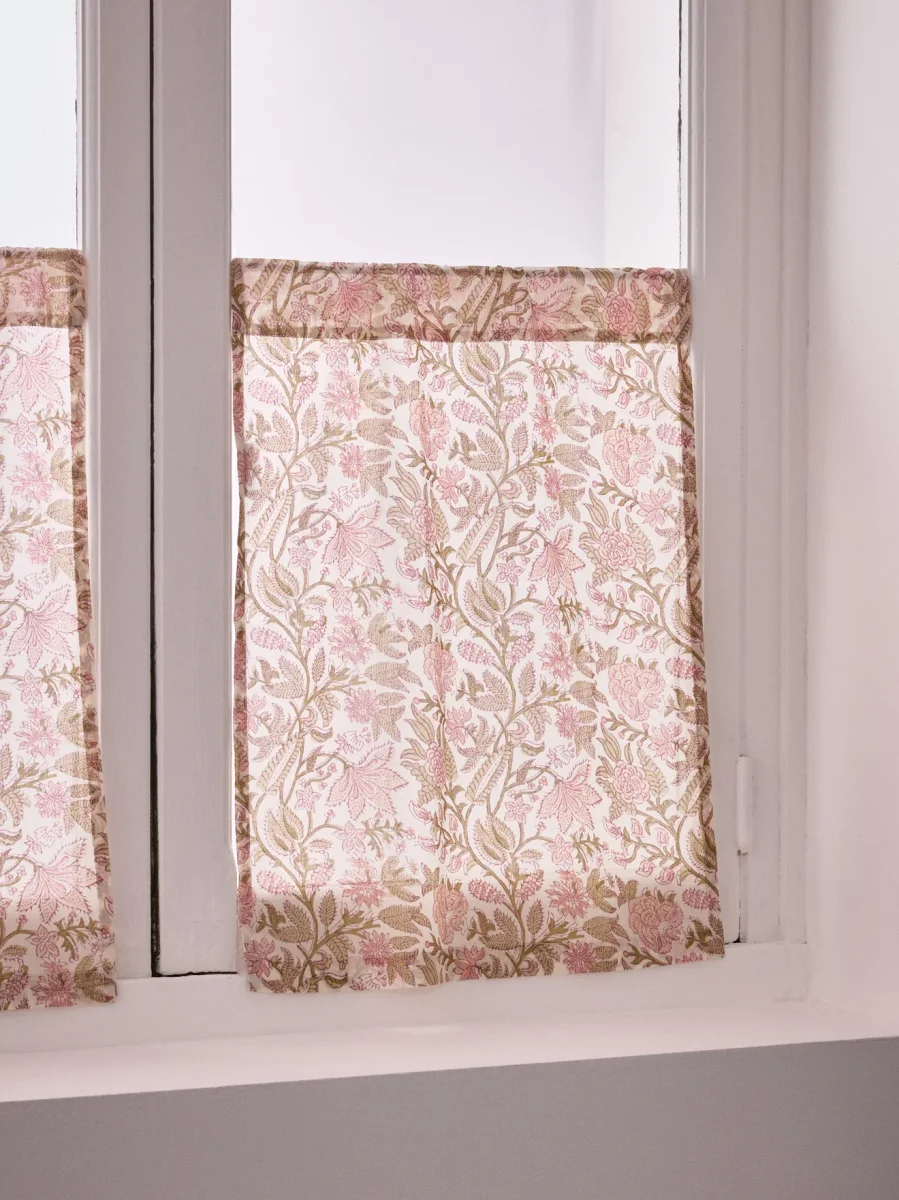 Brise-bise en voile de coton habillé d’un imprimé fleuri typique. Un motif traditionnel et délicat, réalisé à la main en Inde. Placé en bas de fenêtre, il assure un parfait équilibre entre clarté naturelle et intimité.