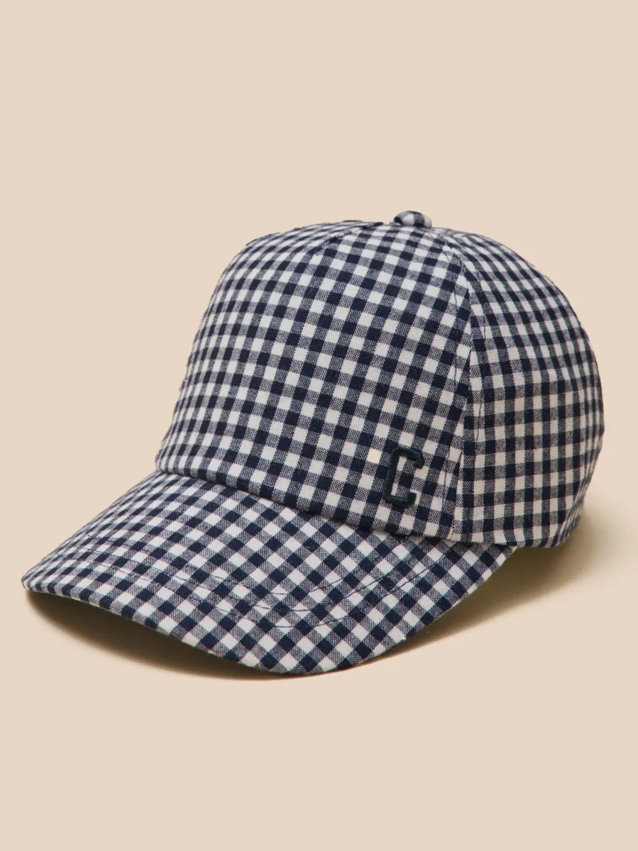 Cette casquette en vichy, à la fois élégante et estivale, offre une manière chic de se protéger du soleil. C brodé à la base