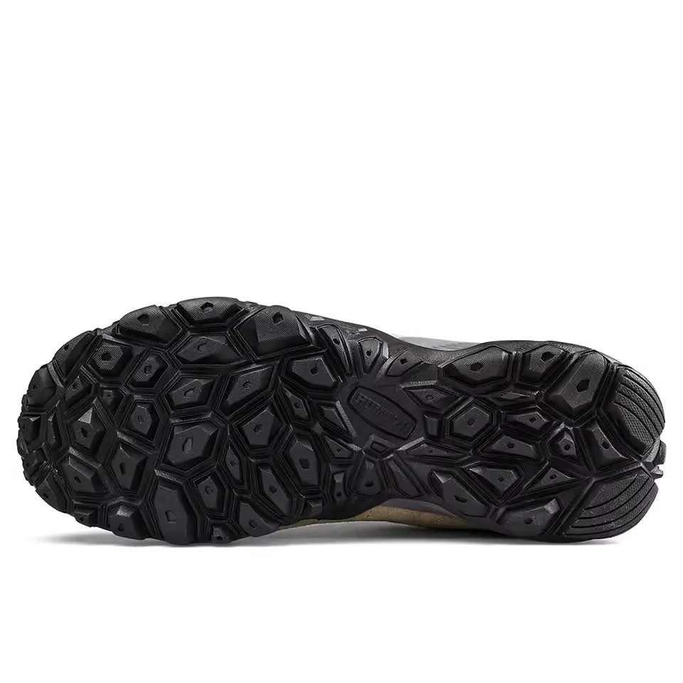 Semelle intermédiaire en EVA pour un amorti uniforme. Semelle externe en caoutchouc à crampons multidirectionnels ≈ 4,0 mm offrant traction et freinage sur rochers, terre ou sentiers humides. Semelle de propreté EVA amovible pour faciliter le séchage. Poids indicatif ≈ 410 g par chaussure en 42.