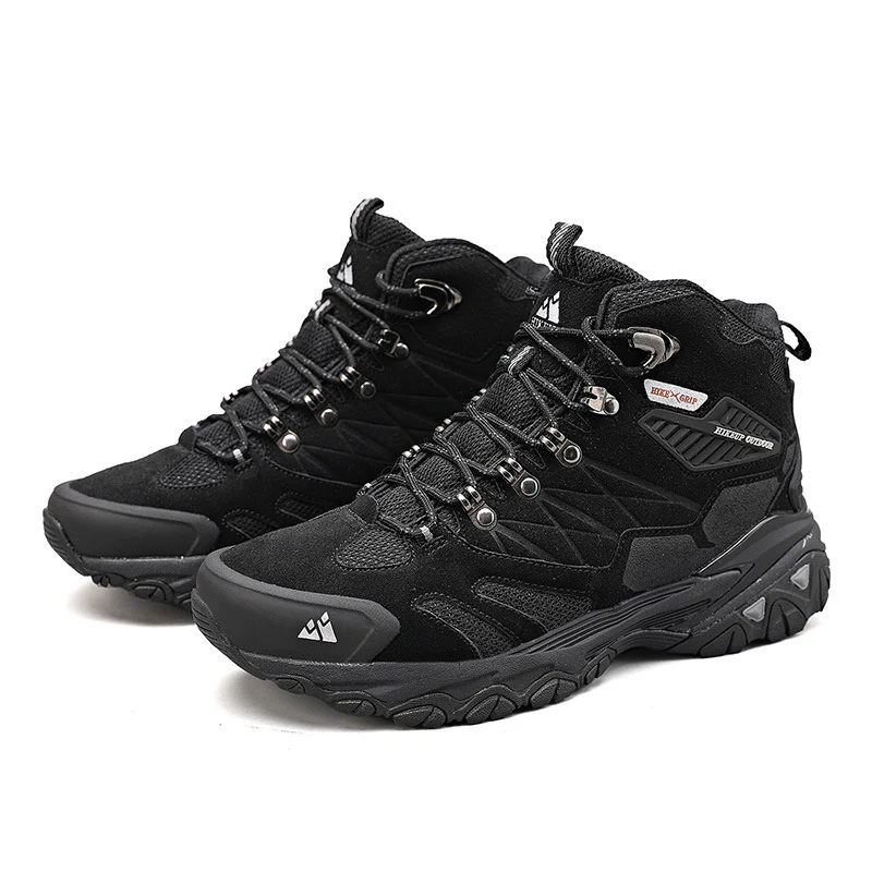 Semelle extérieure en caoutchouc à crampons multidirectionnels pour l’adhérence sur sol sec ou mouillé. Intercalaire en EVA amortissant, semelle interne amovible et respirante. Laçage précis avec œillets métalliques et crochets rapides. Poids indicatif 530 g par pied en 42. Coloris noir, kaki ou gris. Tailles EU 40 à 45.
