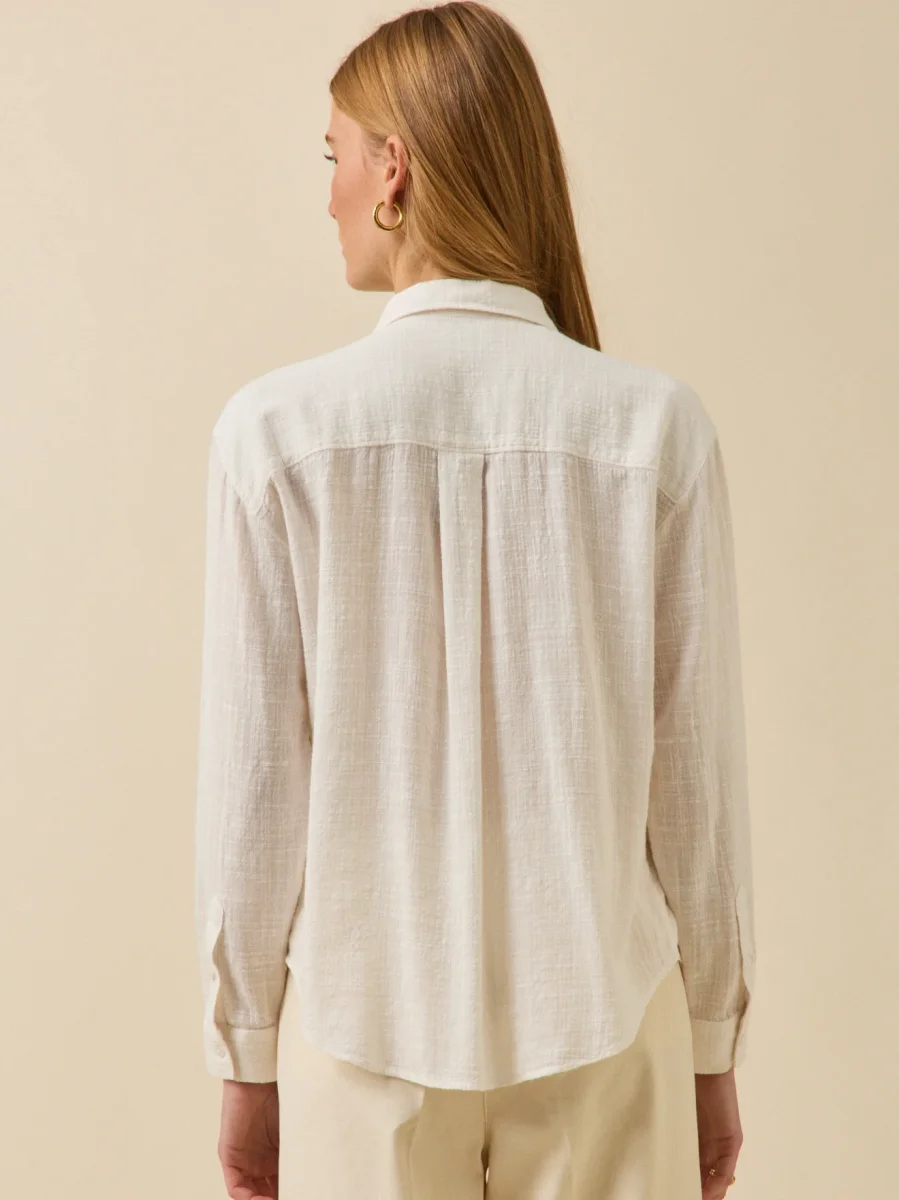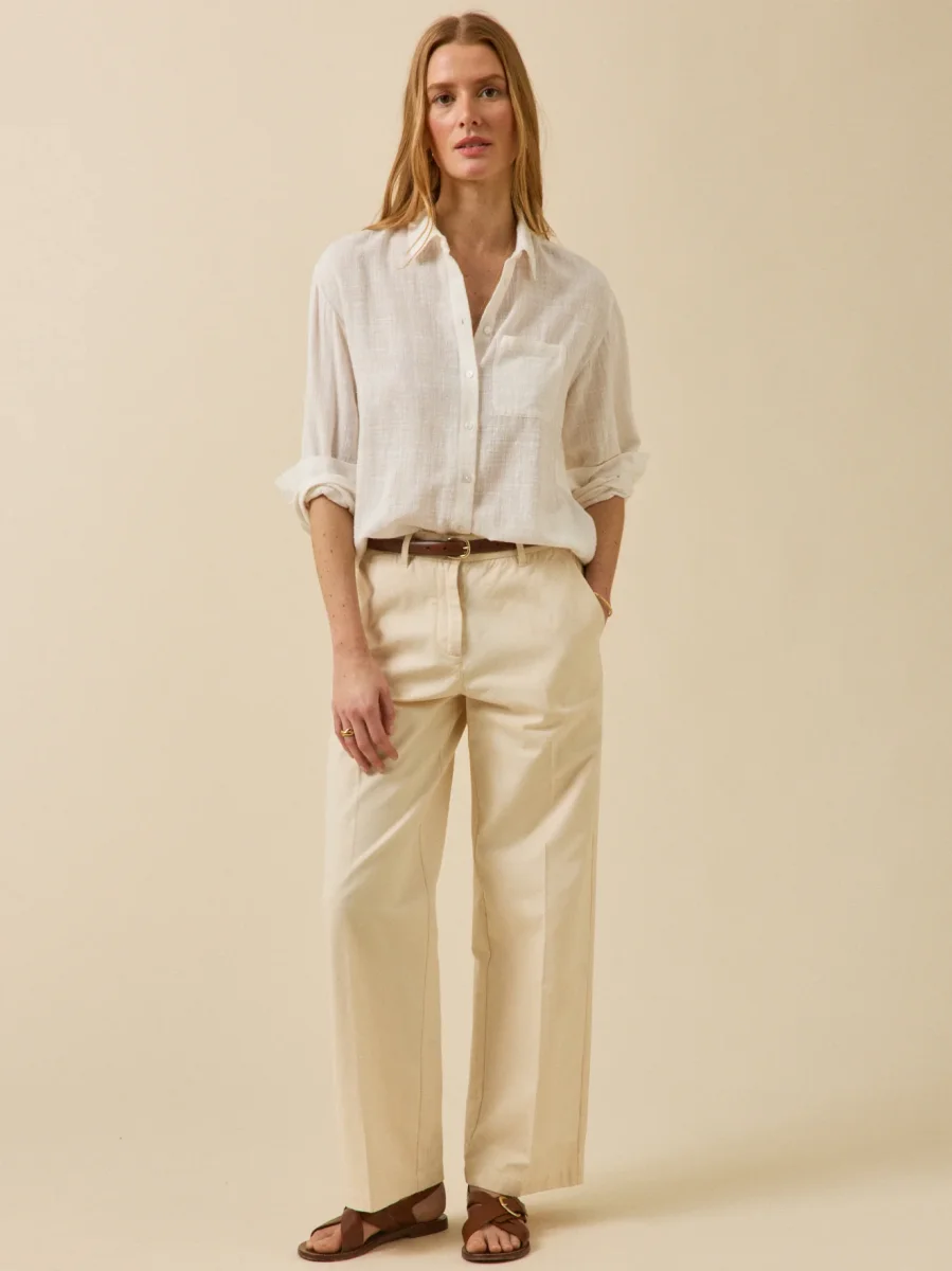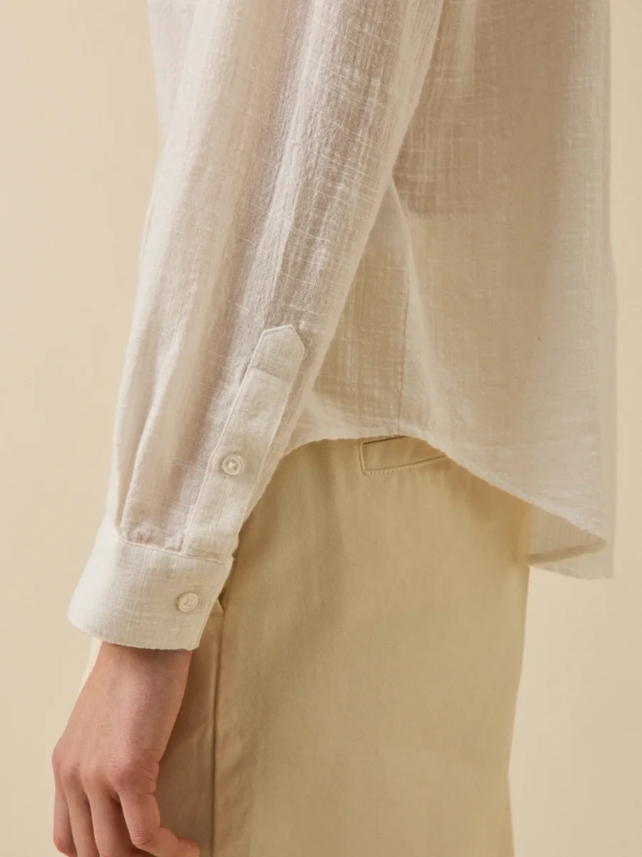 Un crépon texturé, une teinte naturelle et une coupe droite au volume généreux. Entre look citadin et décontraction, la chemise impose une allure moderne et aérienne.