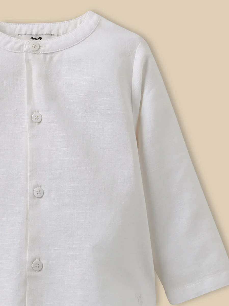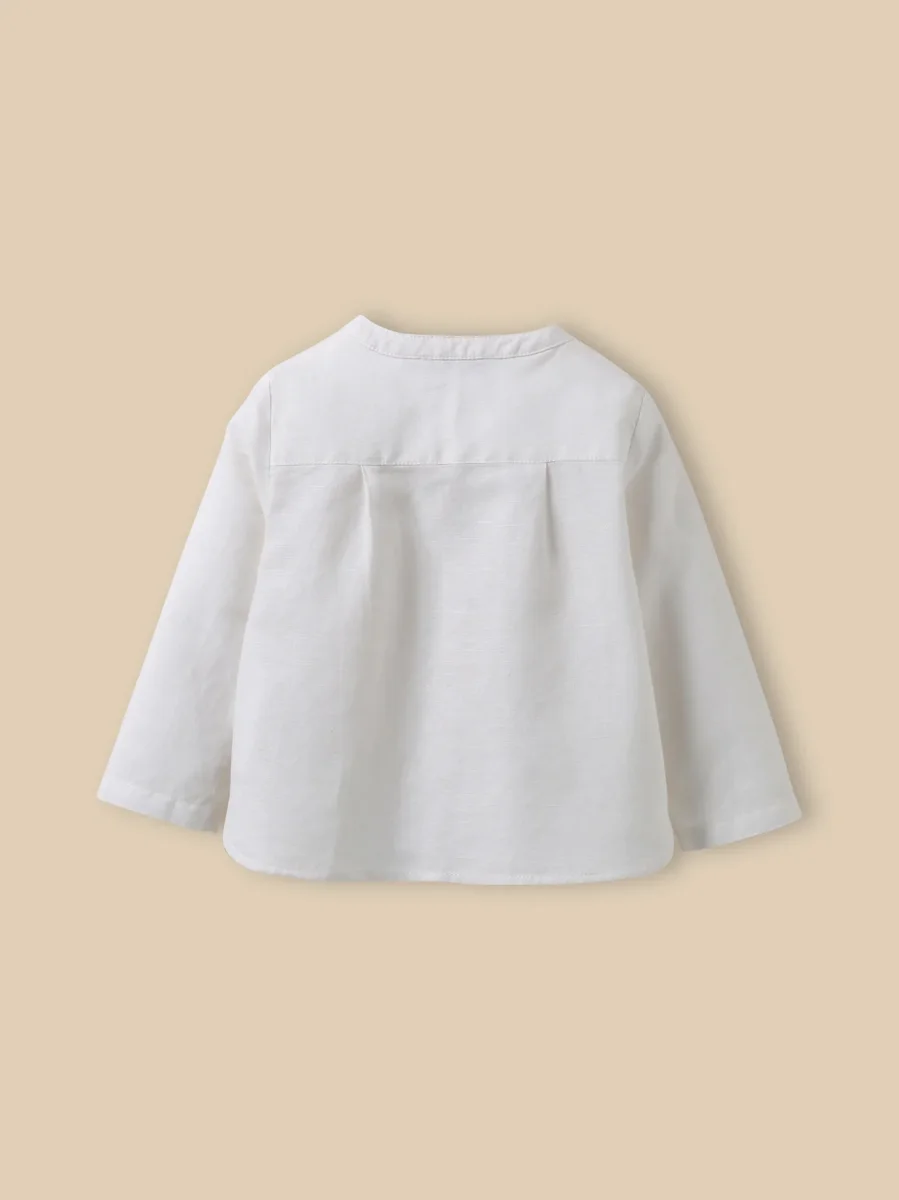 Avec son col officier et ses belles matières, la chemise blanche a cette élégance naturelle, parfaite pour une cérémonie ou une belle journée d’été. Col officier. Monogramme brodé. Découpe dos avec plis Base arrondie sur les côtés. Ouverture par boutons