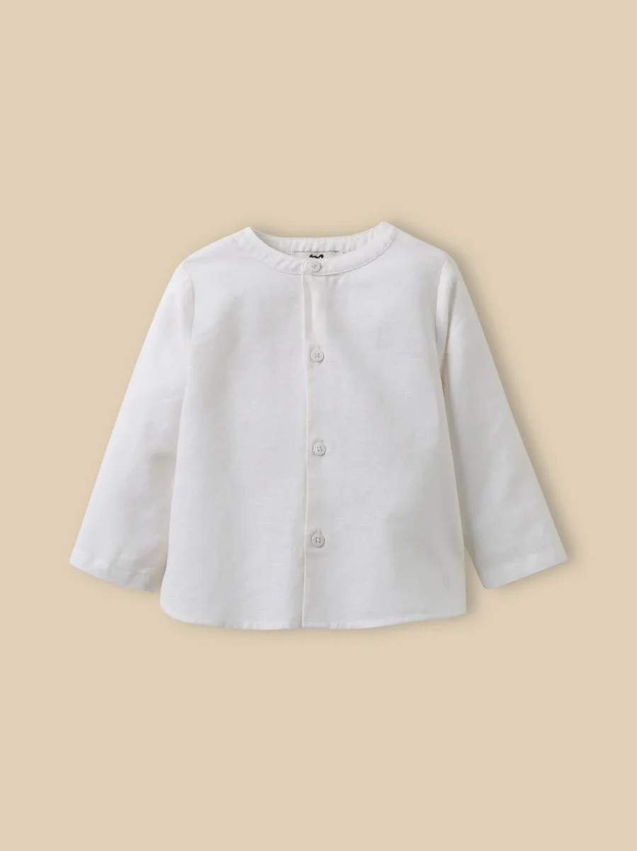 Avec son col officier et ses belles matières, la chemise blanche a cette élégance naturelle, parfaite pour une cérémonie ou une belle journée d’été.