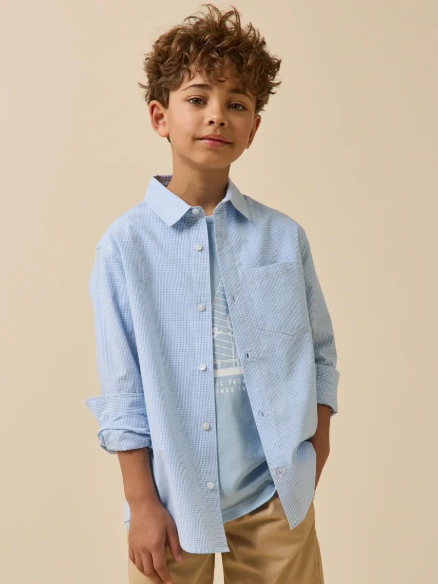 Chemise en micro vichy, ce classique élégant est facile à associer au vestiaire des garçons.