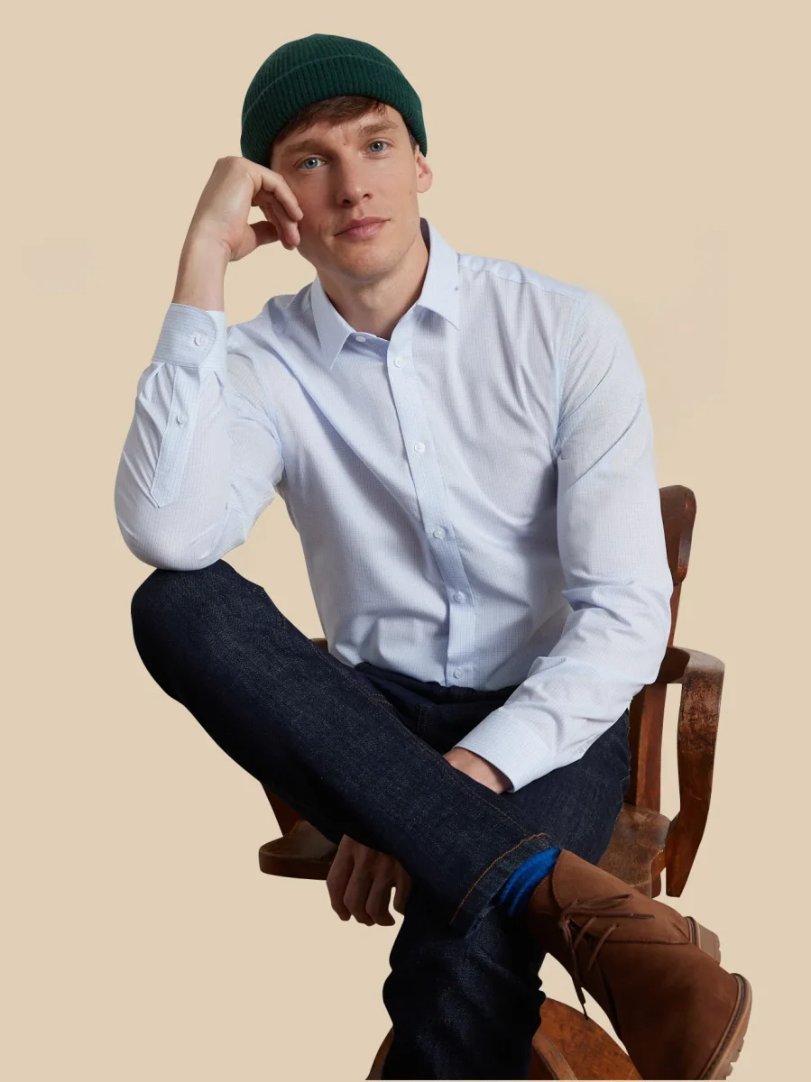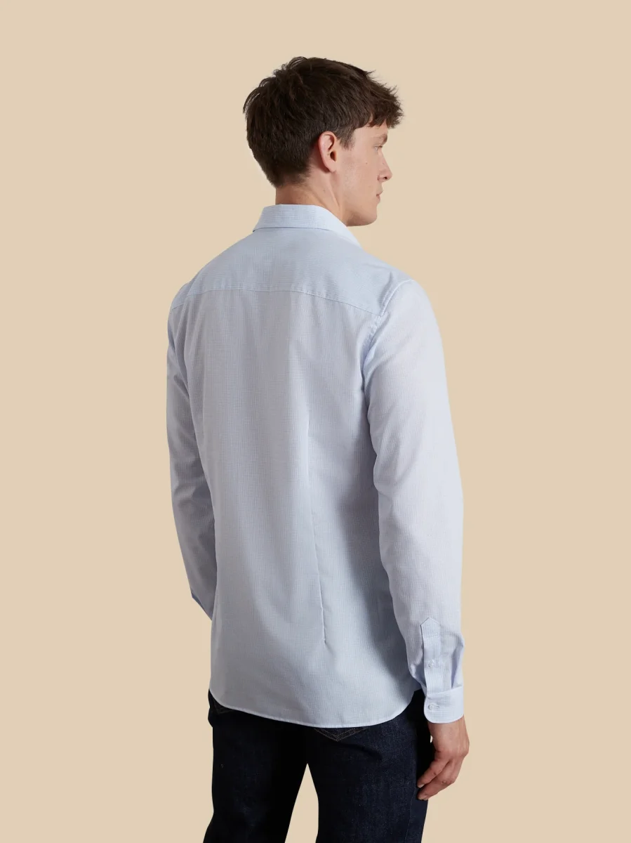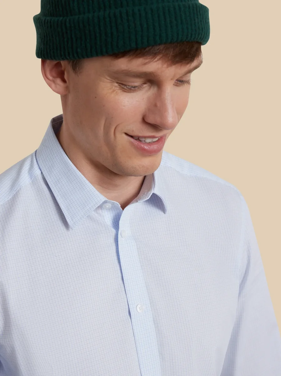 Mini carreaux et popeline au rendu impeccable, la chemise décale une tenue classique et réveille le style urbain. Coupe ajustée soulignant la silhouette, légèrement cintrée poitrine et taille.