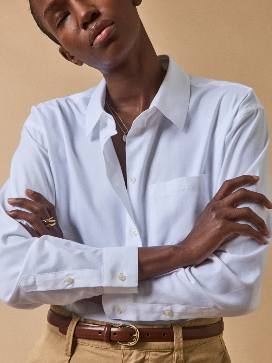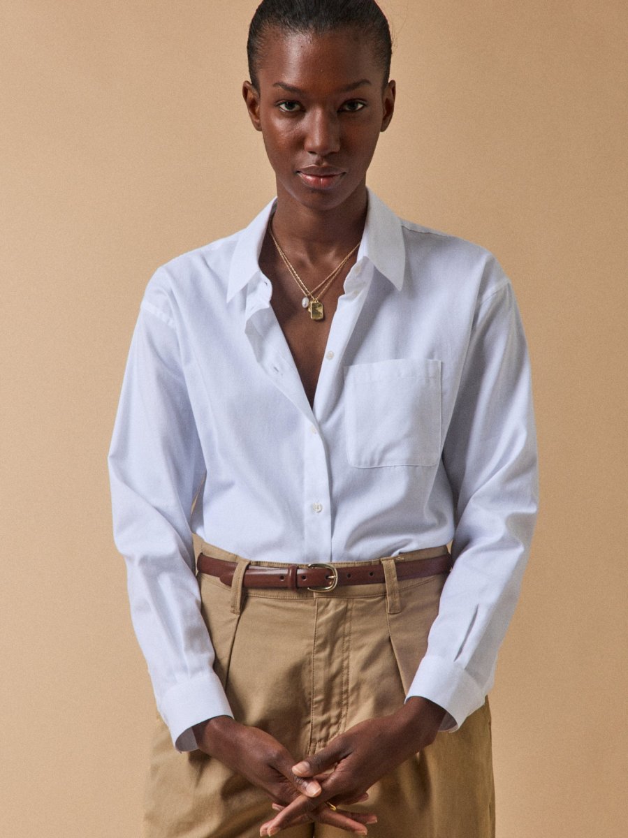 Confectionnée au Maroc dans un nouveau tissu Oxford plus doux et plus souple en coton biologique certifié, une chemise au volume repensé à partir de notre modèle iconique. Et déclinée dans des tonalités douces, pour composer une silhouette féminine, moderne et raffinée.