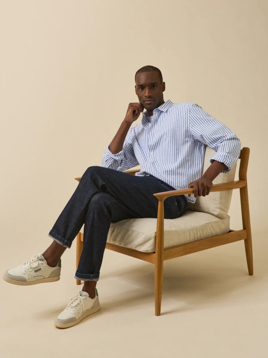 Rayures cool chic sur beau tissu coton et lin de la maison espagnole Sidogras. Confectionnée au Maroc, la chemise est aussi à l’aise en mode urbain avec un pantalon de ville qu’en mode décontracté avec un jean. Coupe contemporaine convenant à toutes les morphologies. Col classique, patte de boutonnage, poignets arrondis avec boutonnage ajustable 2 […]