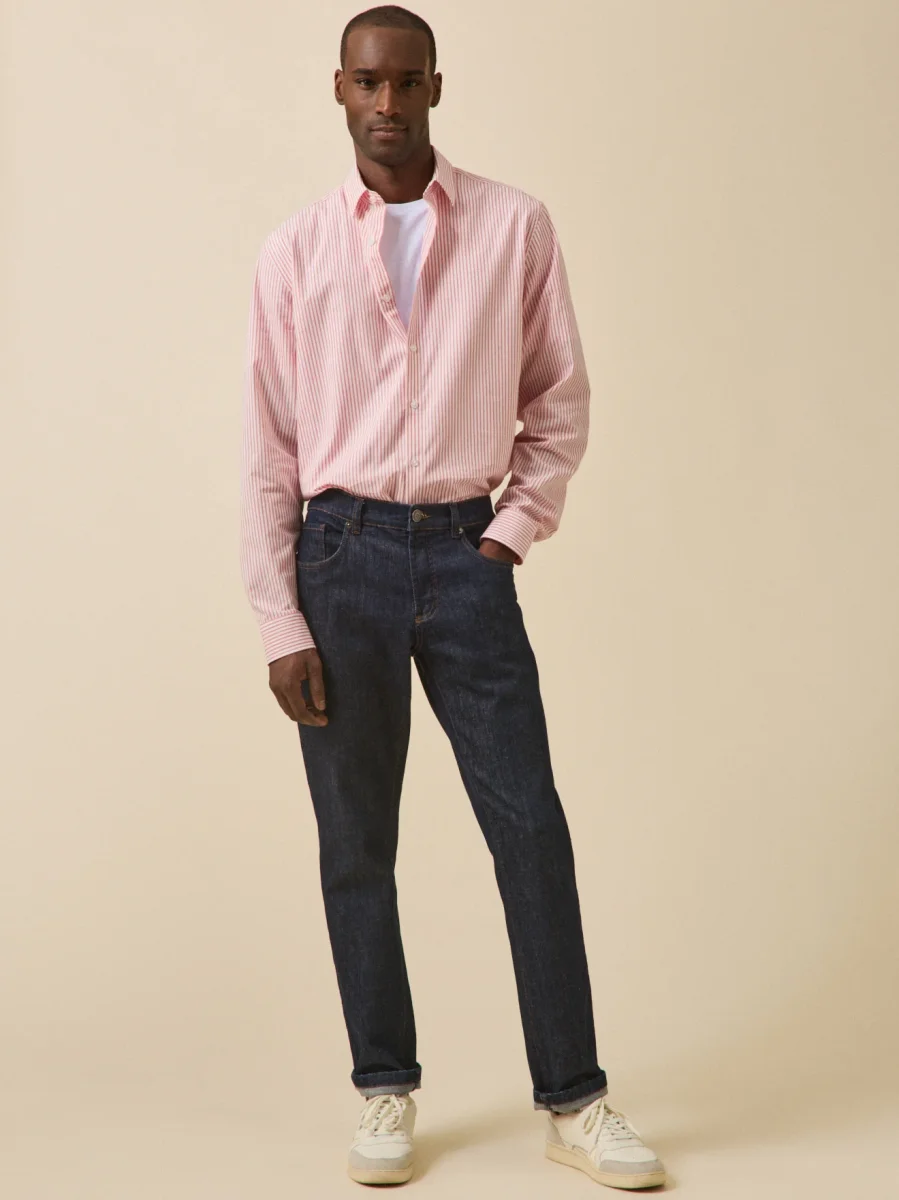 La chemise rayée fait partie des essentiels du vestiaire masculin. Confectionnée au Maroc dans une belle matière en coton biologique certifié et tissée au Portugal, celle-ci s’offre un style facile entre casual et urbain. Coupe contemporaine convenant à toutes les morphologies. Col classique, patte de boutonnage, poignets arrondis avec boutonnage ajustable 2 positions Découpes épaules […]