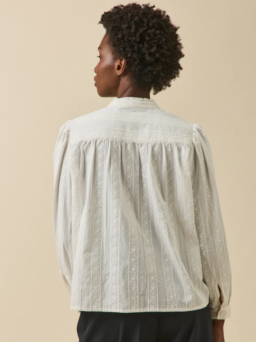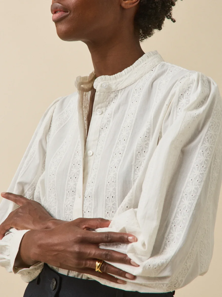 Entre moderne et romantique, la chemise marie la délicatesse de la broderie anglaise à la douceur du coton biologique. Et insuffle une élégance naturelle au quotidien.