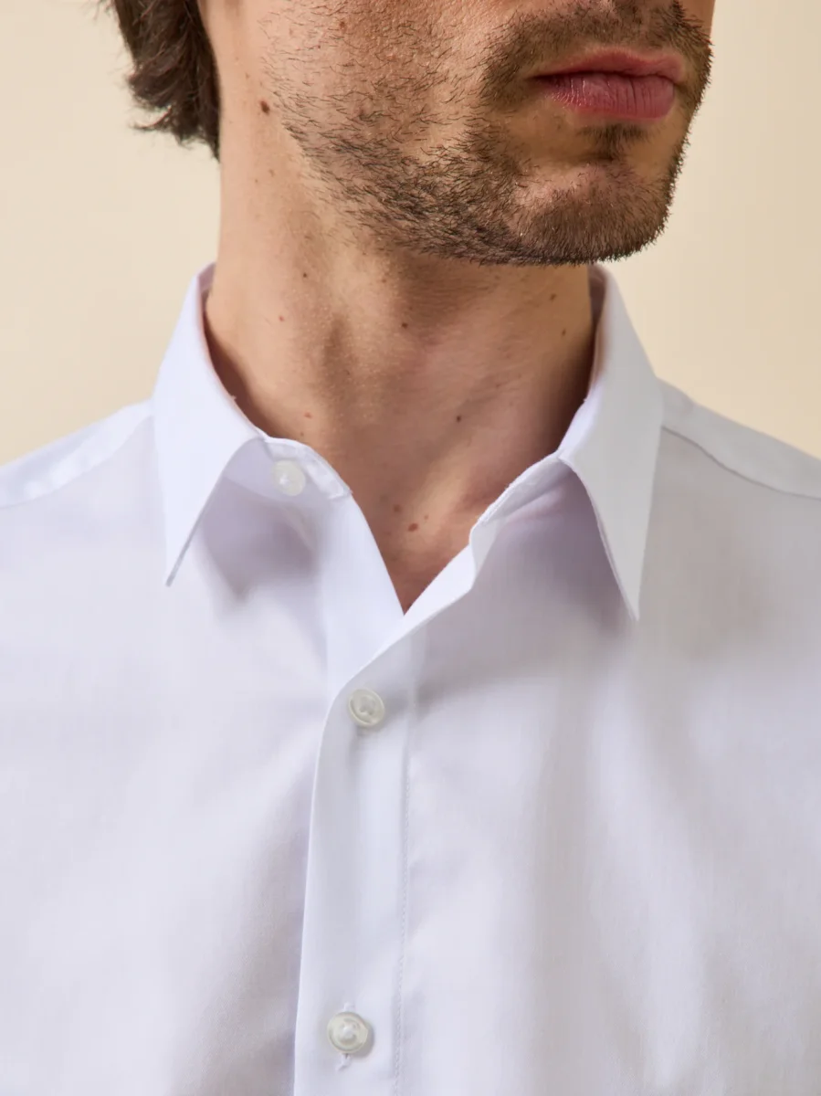 Nos chemises contemporaines ont une coupe droite, il s’agit de notre nouvelle « regular » légèrement retravaillée.