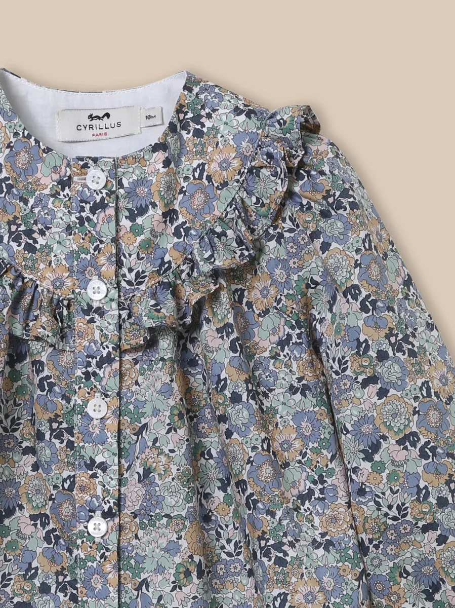 Cette chemise se distingue par son plastron volanté et son motif délicat Cassy. Facile à associer, elle apporte une touche de raffinement à un denim ou un legging.