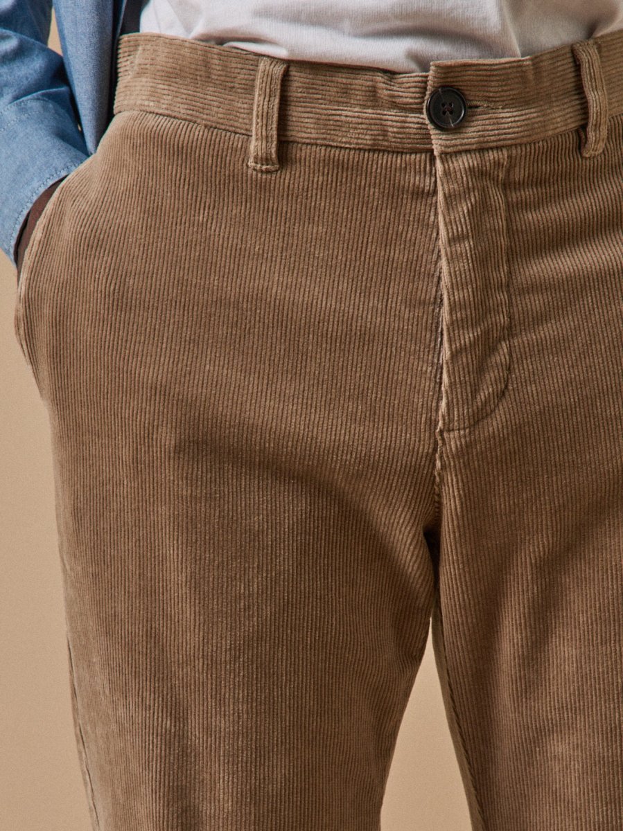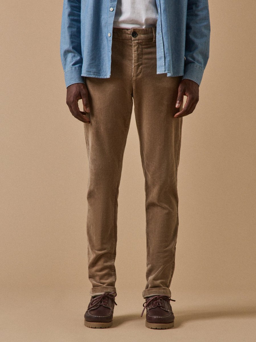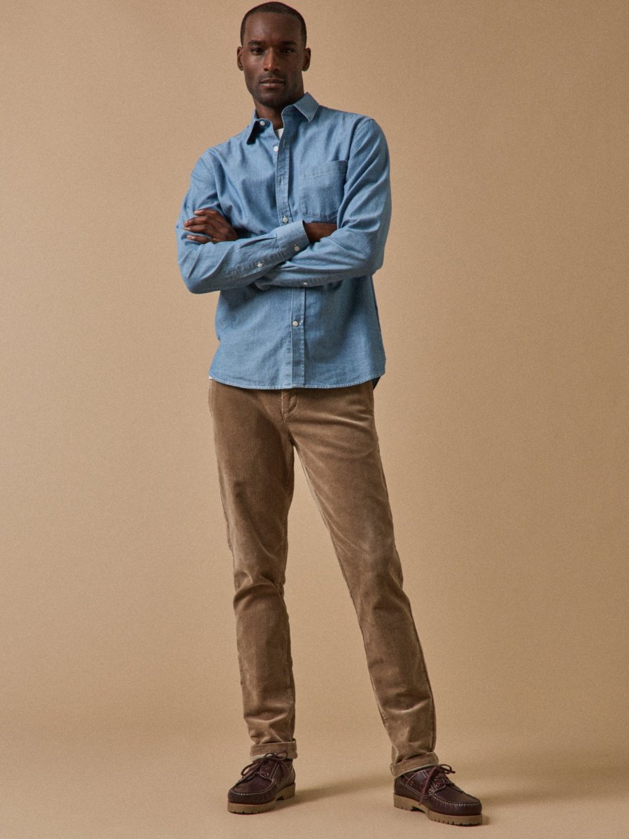 L’indispensable chino de toutes les situations (travail, bureau, week-end…) s’offre un nouveau look et voit désormais la vie en velours grosses. Une coupe semi-droite, moderne, pas trop serrée aux cuisses, confortable et qui va vous affiner. Des sacs de poches profonds pour vous permettre d’y mettre portable et clefs sans les perdre.