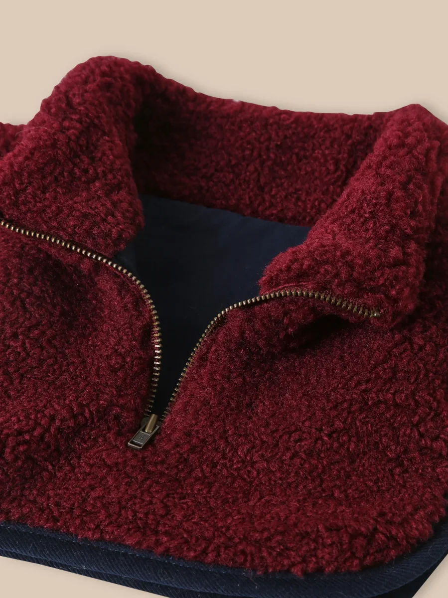 Plus pratique qu’une écharpe, ce col en sherpa enveloppe le cou de douceur.