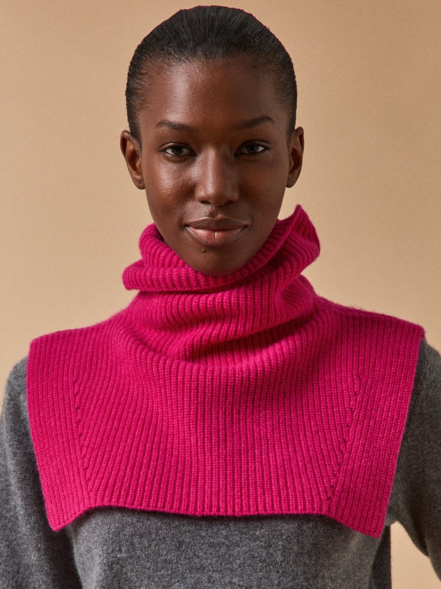 Faux col roulé, mais vrai accessoire de mode, il se glisse sous une veste, un caban ou un manteau pour réchauffer l’hiver. Col roulé double, plastron devant et dos