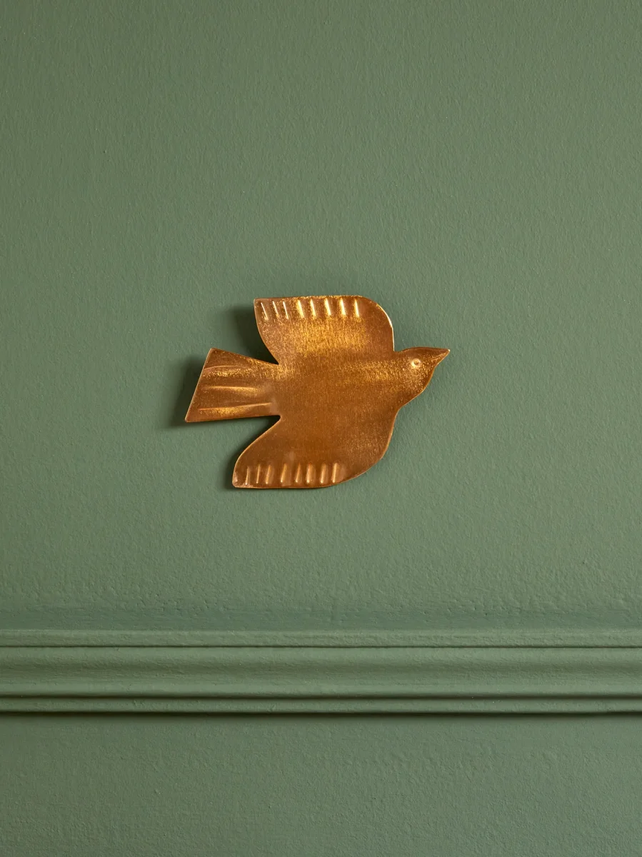 Oiseau décoratif en métal doré. Accroché au mur, il offre une déco douce et apaisante.