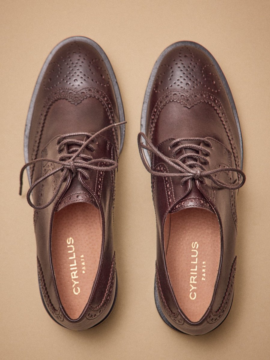 Derbies bout fleuri lacées cuir femme