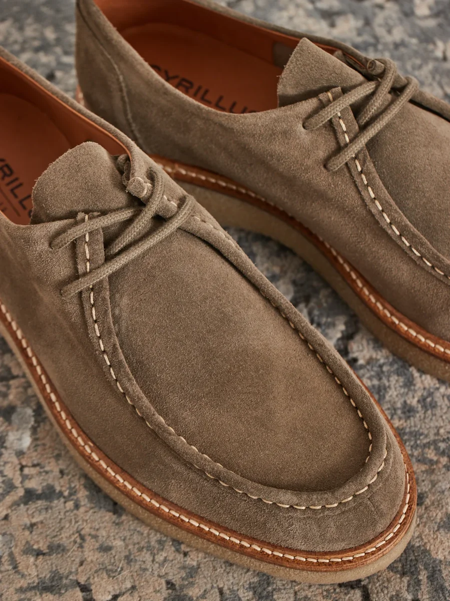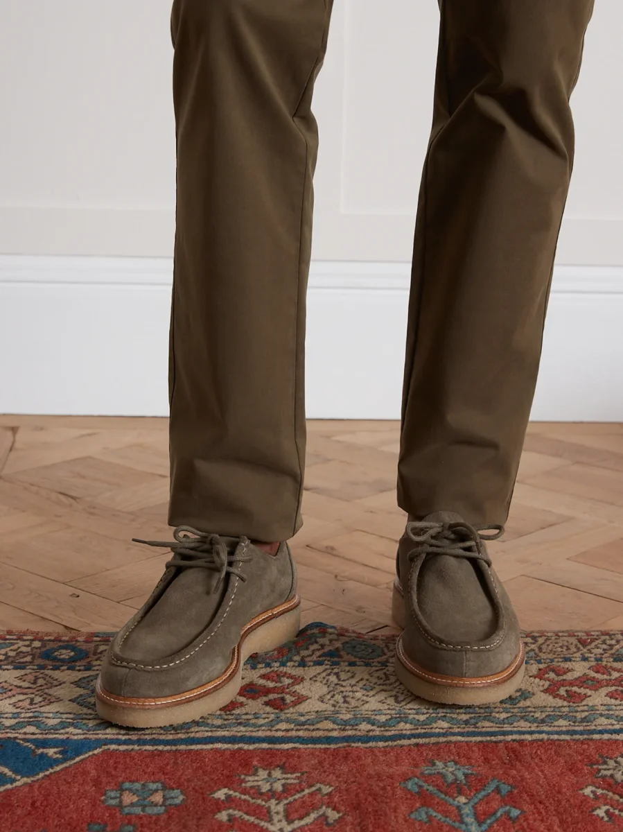Elles jouent la tendance kaki sur un cuir velouté. Aussi à l’aise en ville qu’en week-end, les derbies mettent un point final à une silhouette sport chic.