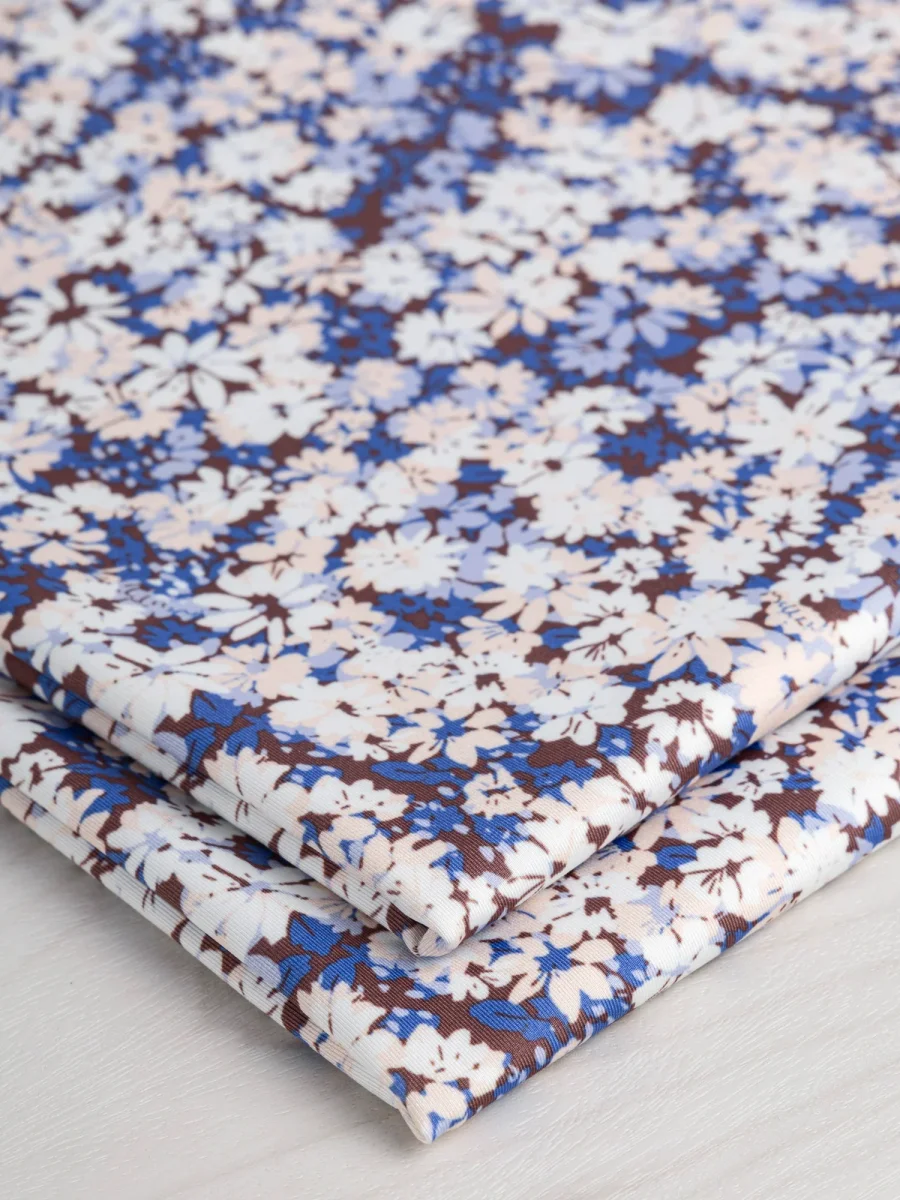 Ditzy Daisy Recycled Swim Performance Knit – Walnut + Blue + White