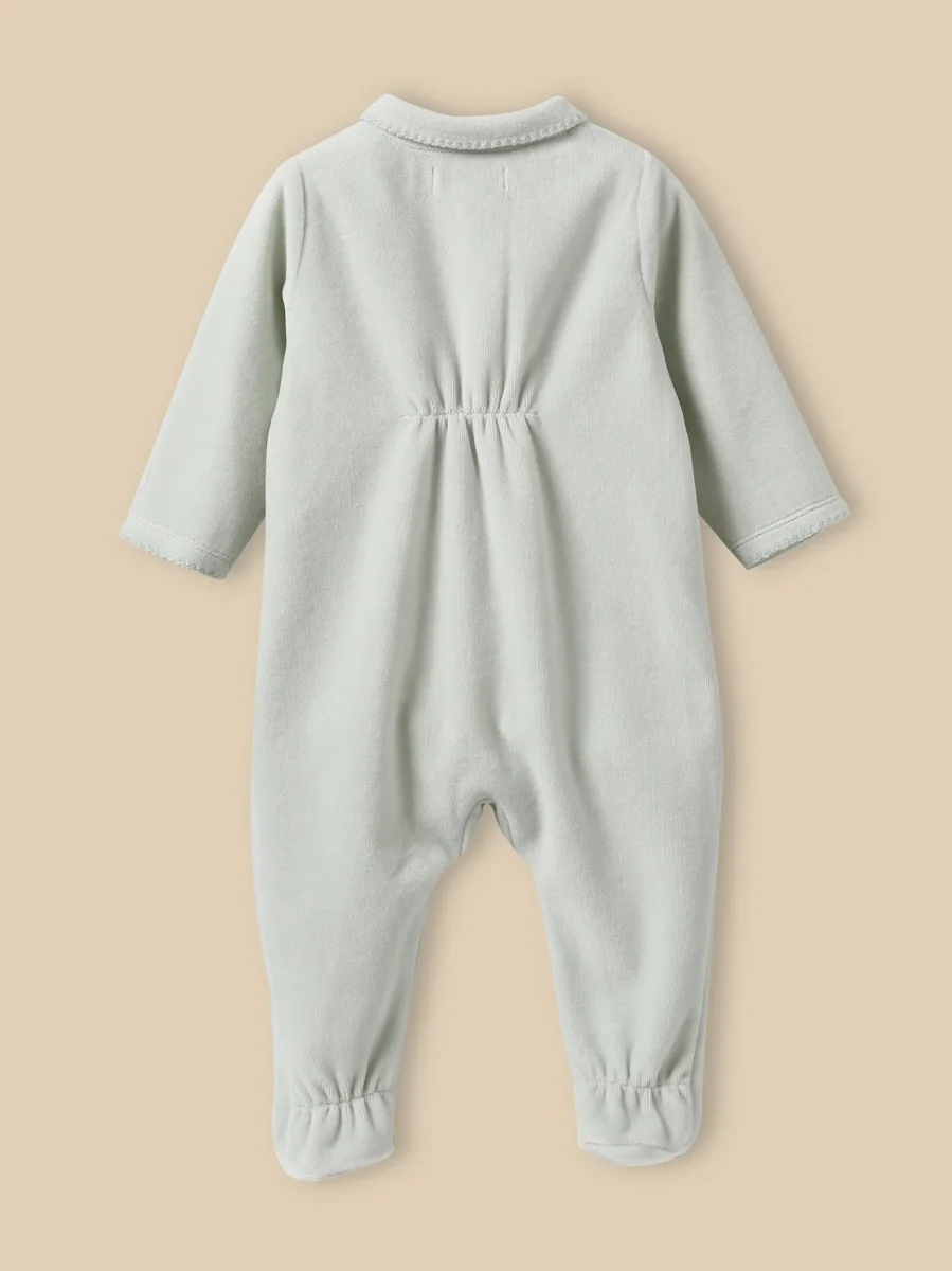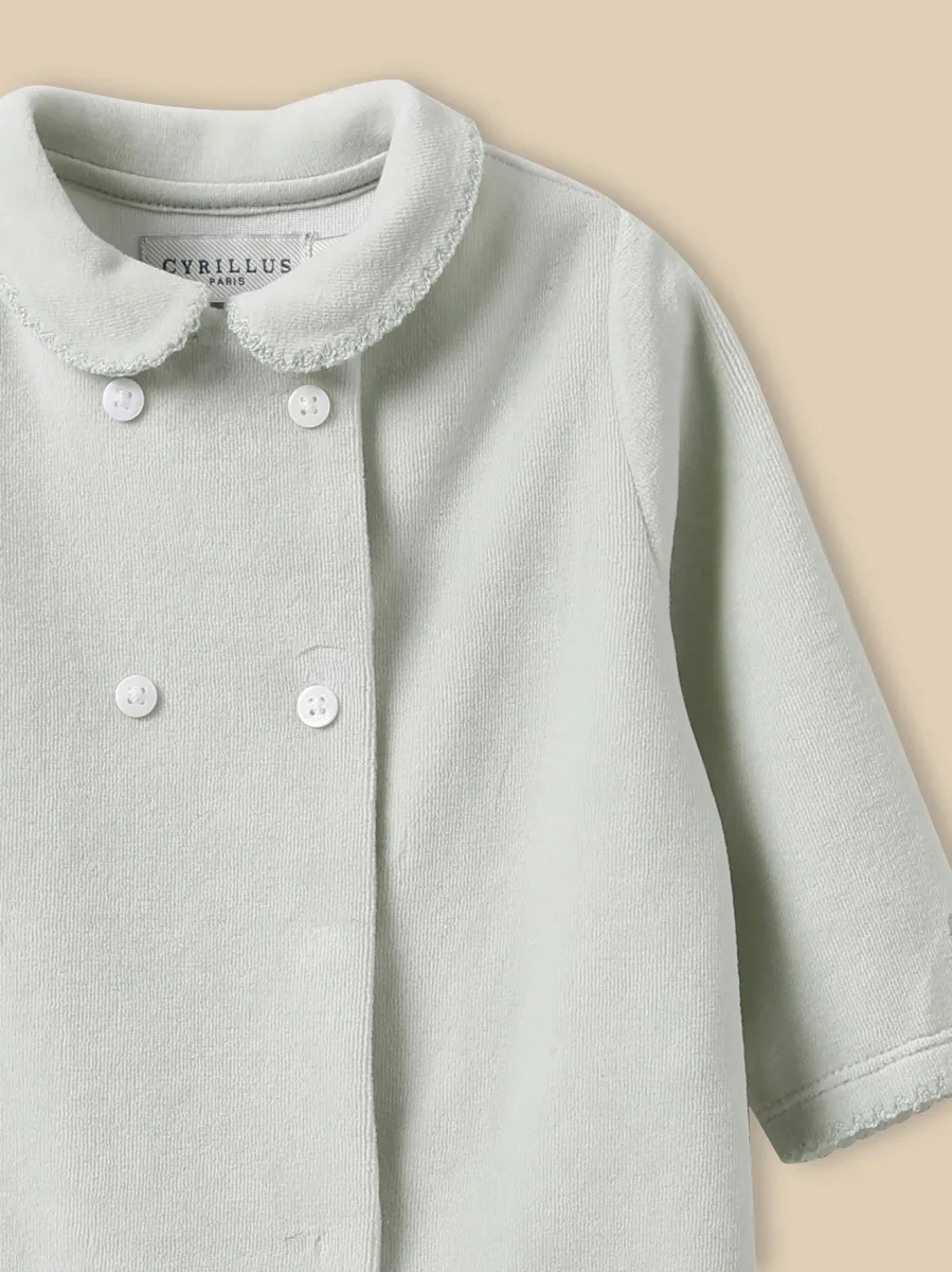 Un prix câlin et un velours tout doux pour cet essentiel à glisser dans le trousseau de maternité. Col claudine bordé d’un fin picot. Fermeture devant et à l’entrejambe par pressions cachées Broderie CY sur un poignet