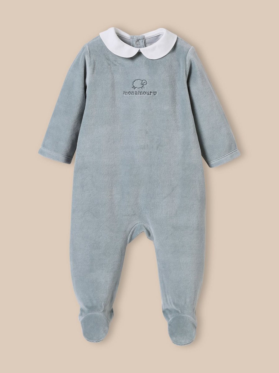 Un élégant col claudine, une broderie délicate et un velours tout doux… Un beau cadeau de naissance qui pourra se transmettre dans la fratrie.