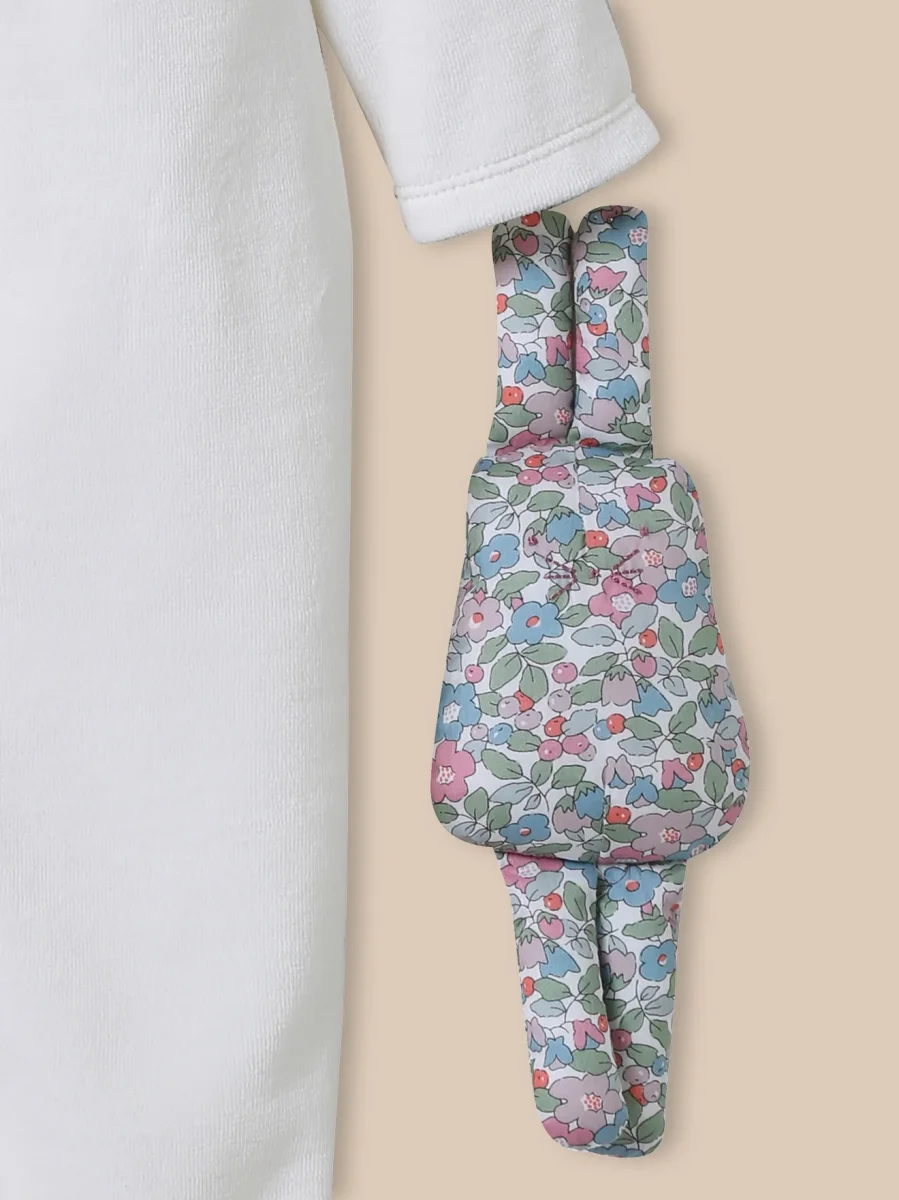 Un dors-bien très raffiné avec son col en tissu Liberty et son doudou assorti. Pratique, l’ouverture devant pour habiller avec facilité bébé. Une merveilleuse idée cadeau.