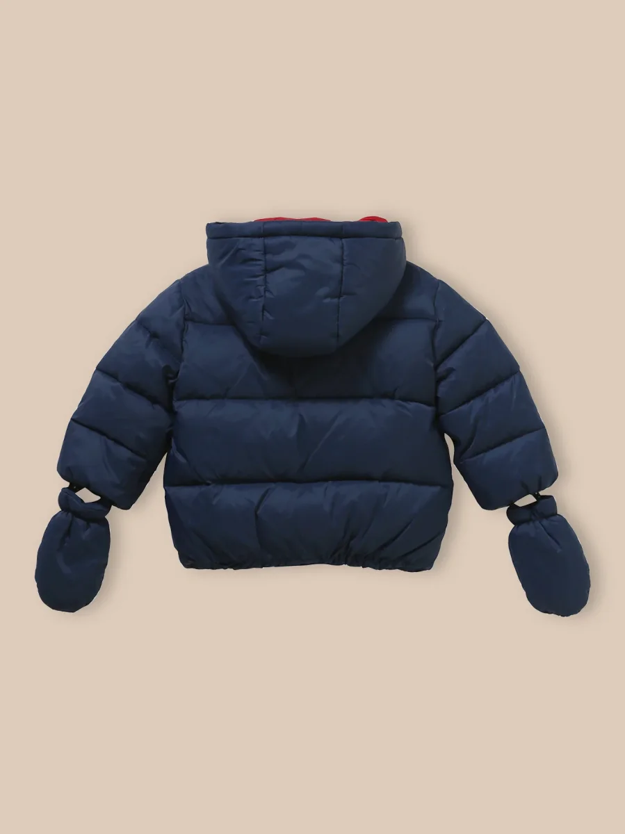 Tissu technique déperlant, doublure douce en sherpa, garnissage épais et chaud, capuche protectrice, moufles… Une doudoune de qualité bien pensée pour protéger efficacement votre enfant.