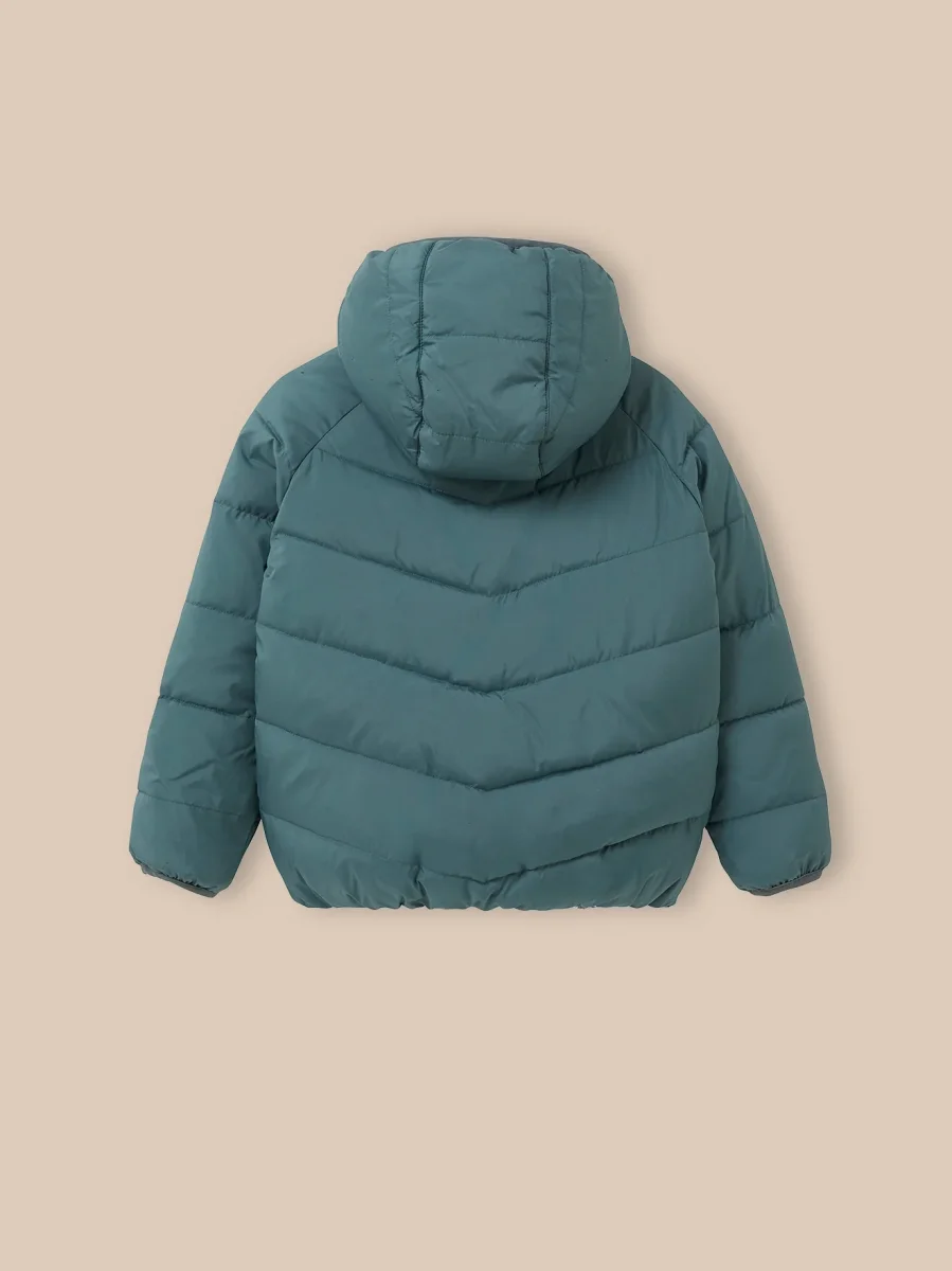 Une face vichy coupe vent légèrement gaufrée et une face déperlante unie marine. La doudoune réversible continue de faire sensation. Elle est pratique pour supporter les caprices de l’hiver tout en variant les plaisirs.