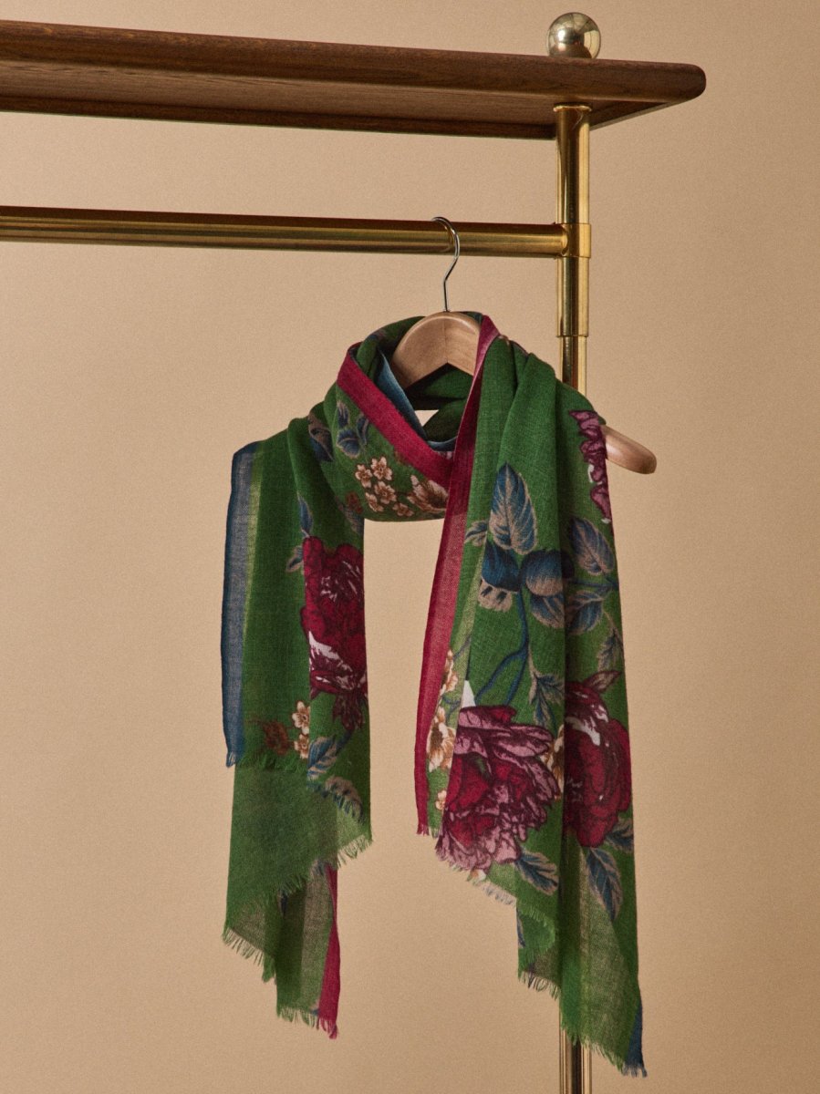 Imprimé fleuri chic et belle matière… Pour réchauffer l’allure et le style, c’est la proposition la plus douce et colorée de la saison ! Dimensions : 70 x 180 cm environ Finition frangée sur 2 côtés