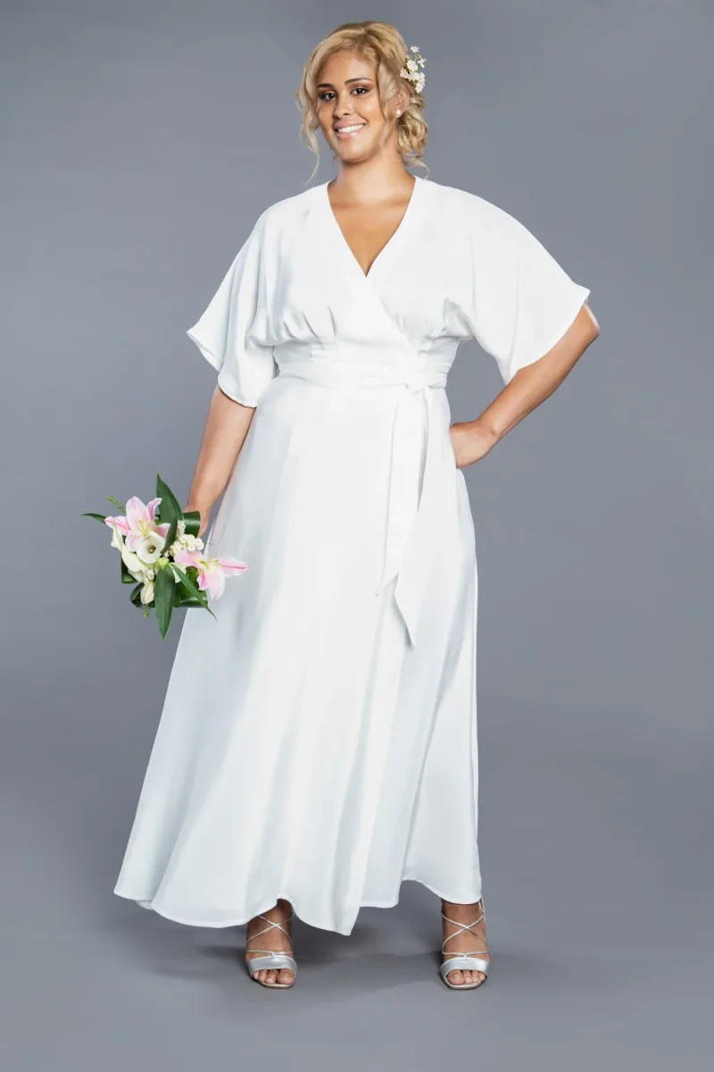 Elodie is a modern take on a classic wrap dress. Romantic and flowy with multiple skirt and sleeve options, it’s equally appropriate at a park picnic or a special wedding.